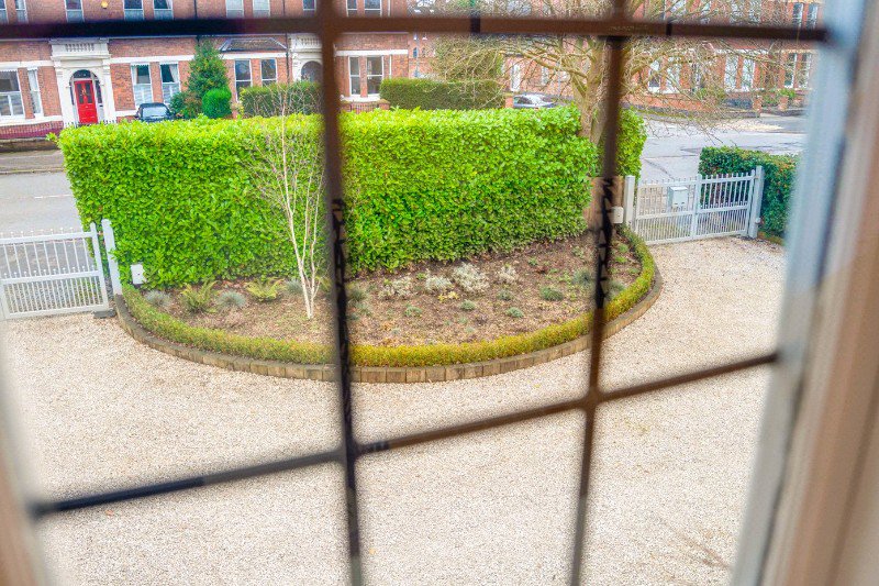 To the front, the garden has been carefully landscaped and features a striking multi-stem silver birch. The gated in-and-out driveway, with electric gates and intercom system, provides parking for approximately five vehicles. A gated external store houses the bin store and an EV charging point.