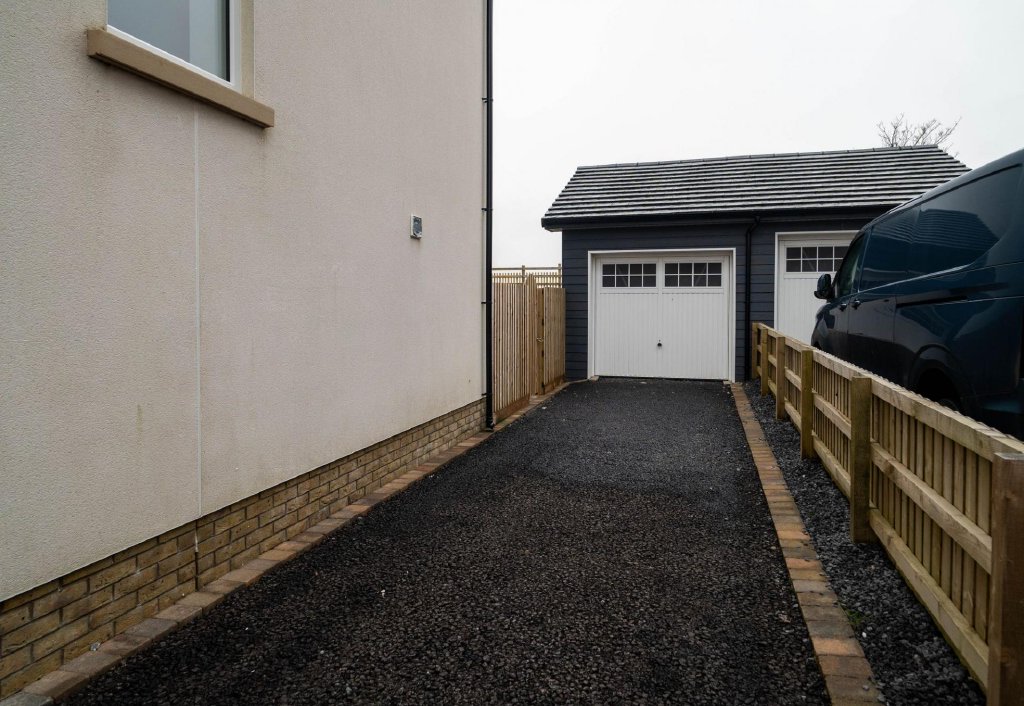 Externally, the property continues to impress with a robust, well-constructed garage, driveway parking, and gardens to both front and rear. The rear garden is mainly laid to lawn and enjoys far-reaching views over rolling fields and trees — a truly peaceful setting rich with wildlife and natural beauty.