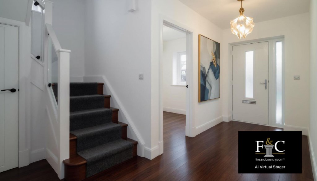 Upstairs, the sweeping staircase leads to four well-proportioned bedrooms, including a principal bedroom with en-suite, as well as a stylish family bathroom.
