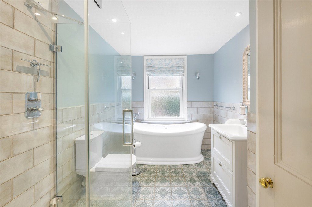 On the upper floor there are two double bedrooms with built-in storage, plus a large family bathroom with separate walk-in shower. For those who would like to extend, there is potential to do so into the loft and over the rear extension, STPP.