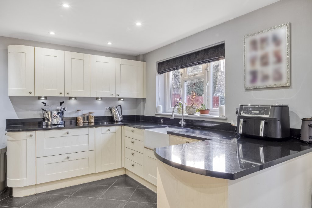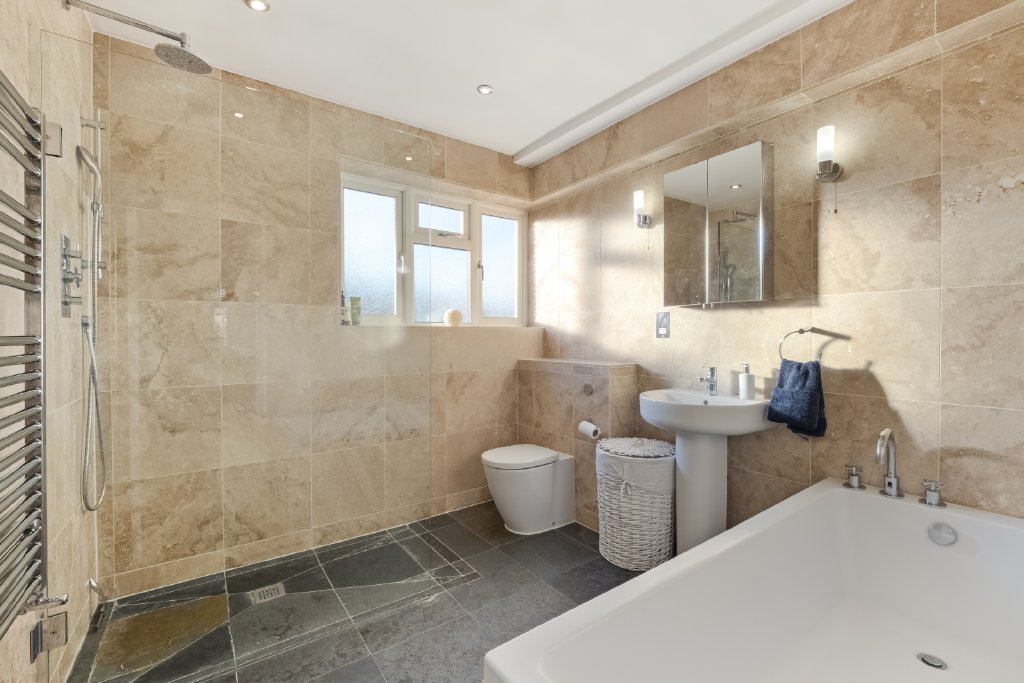 To the first floor, the property continues to impress with five generously sized bedrooms. The principal bedroom benefits from a private en-suite, creating a peaceful retreat away from the main household. The remaining bedrooms are served by a well-appointed family bathroom, finished to a high standard and designed to accommodate the needs of a growing family.