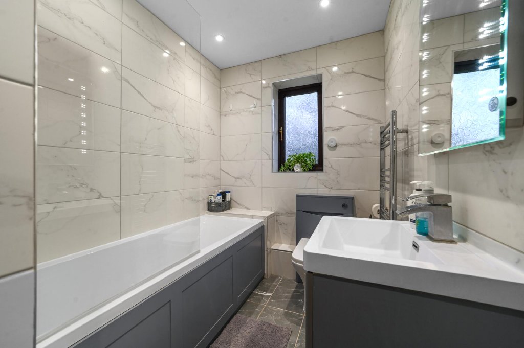 Upstairs, the first floor is arranged around a central landing and hosts four well-proportioned bedrooms. The principal bedroom benefits from its own en suite, while the remaining bedrooms are served by a family bathroom. Each room is thoughtfully laid out, offering flexibility for family living, home working or guest accommodation.