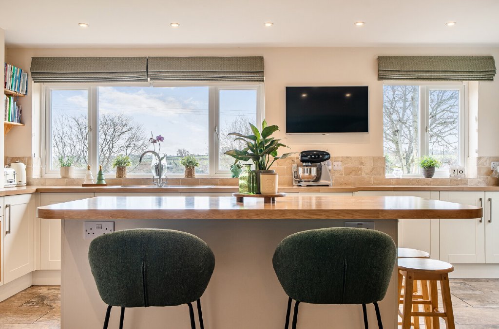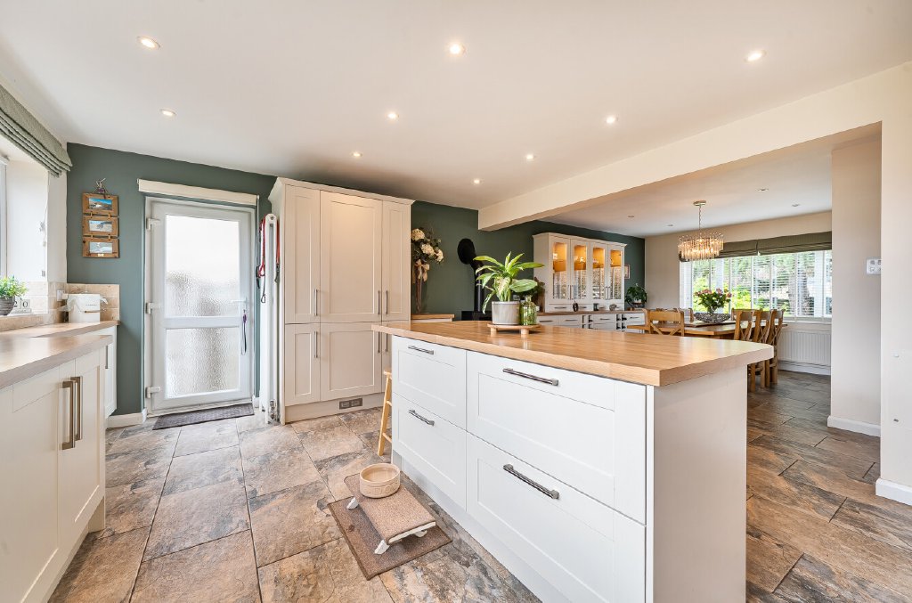 Arranged over two floors, the house follows a traditional layout, with generous living accommodation on the ground floor and bedrooms and bathrooms above. The first floor offers four well-proportioned bedrooms, including a principal bedroom with en-suite, along with a family bathroom. On the ground floor, a spacious kitchen/diner, sitting room, utility room and WC provide excellent everyday living and entertaining space. ‘In 27 years of living here, there is nothing that we haven’t changed throughout the house. The highlight, however, has been the creation of the wonderfully spacious kitchen and dining area, now truly the heart of the home,’ say the owners. They note, ‘all the rooms are generously sized, but the original kitchen was let down by its smaller proportions. It has now been transformed to support the house, family and entertaining in a far more balanced and practical way.’