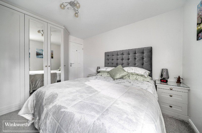 Heading upstairs, the landing has an attractive glass balustrade. The main bedroom has fitted wardrobes and a dressing table (not shown on the floorplan). The second bedroom, which is also a double, has a useful study area and a built-in wardrobe. The third bedroom is a large single and has a built-in cupboard.