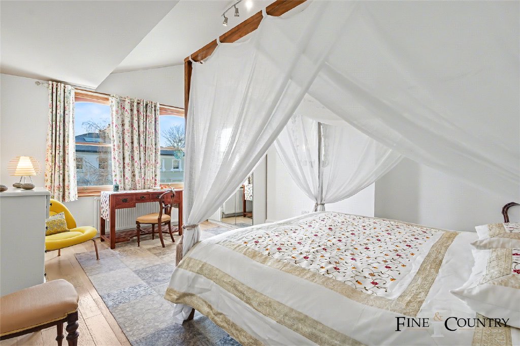 The second floor provides two further bedrooms, including a generous double room and a second well-proportioned bedroom, making it a strong family level. A bathroom serves the floor, and there is also a separate kitchen (compact in scale), offering useful flexibility, whether it is retained as an additional prep space, utilised for multi-generational living, or adapted to suit a buyer’s preferred arrangement.