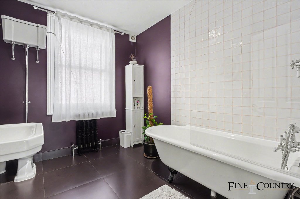 The first and second floors benefit from recently installed timber flooring which enhances the sense of cohesion and quality across the upper accommodation while remaining sympathetic to the house’s Victorian character. The first floor offers further flexible accommodation, with a front reception room that can equally function as an additional bedroom if required. This room benefits from direct access to an en-suite bathroom, while a separate guest WC is positioned off the landing, providing practical convenience for everyday living and entertaining. A further bedroom on this level is quietly positioned to the rear, enjoying generous proportions and retained period character.