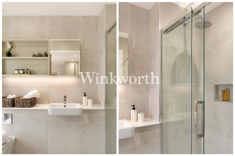 Full-height bi-fold doors flood the living space with natural light and open directly onto a private terrace, creating a strong connection between indoors and out. Upstairs, the bedrooms are calm and well-proportioned, each benefitting from floor-to-ceiling windows that draw in light throughout the day. Both bathrooms are finished to a high standard, with carefully chosen fixtures and fittings.