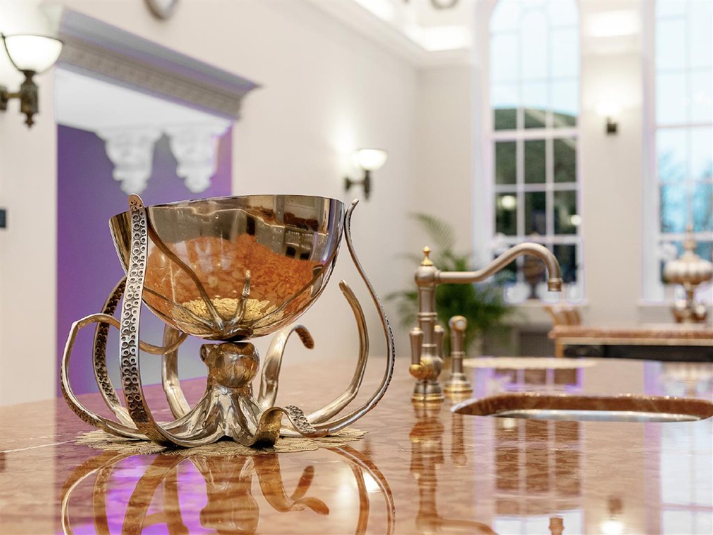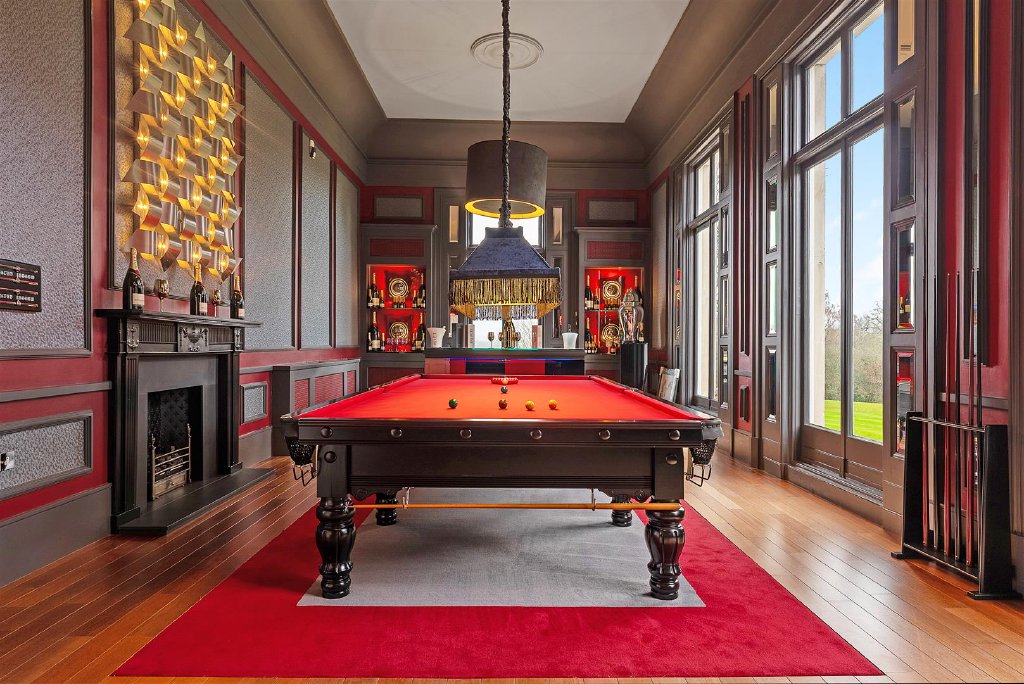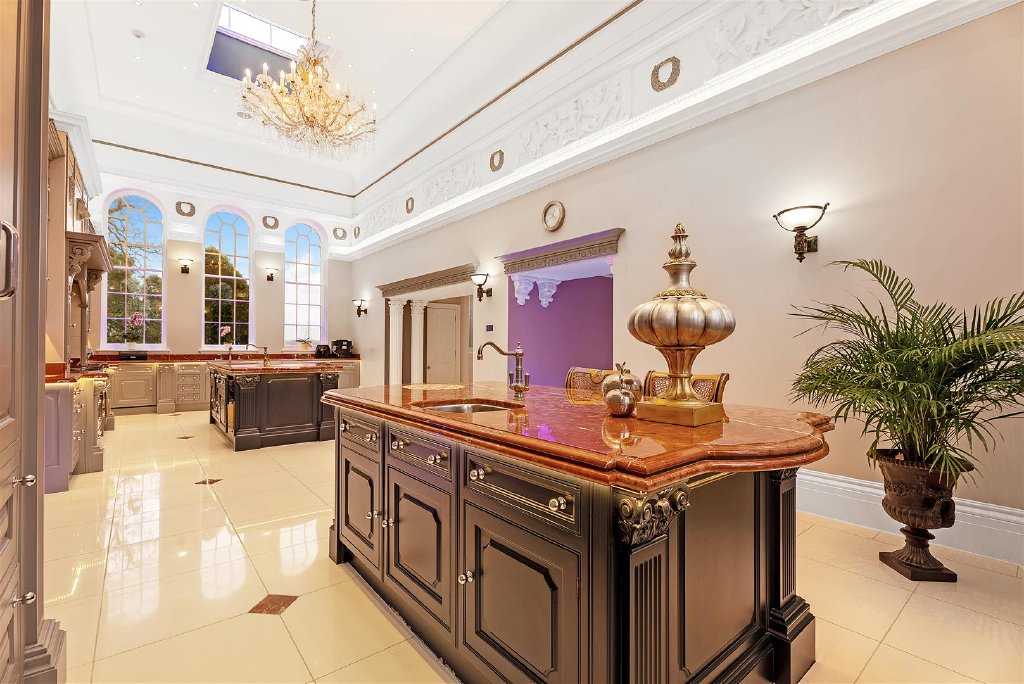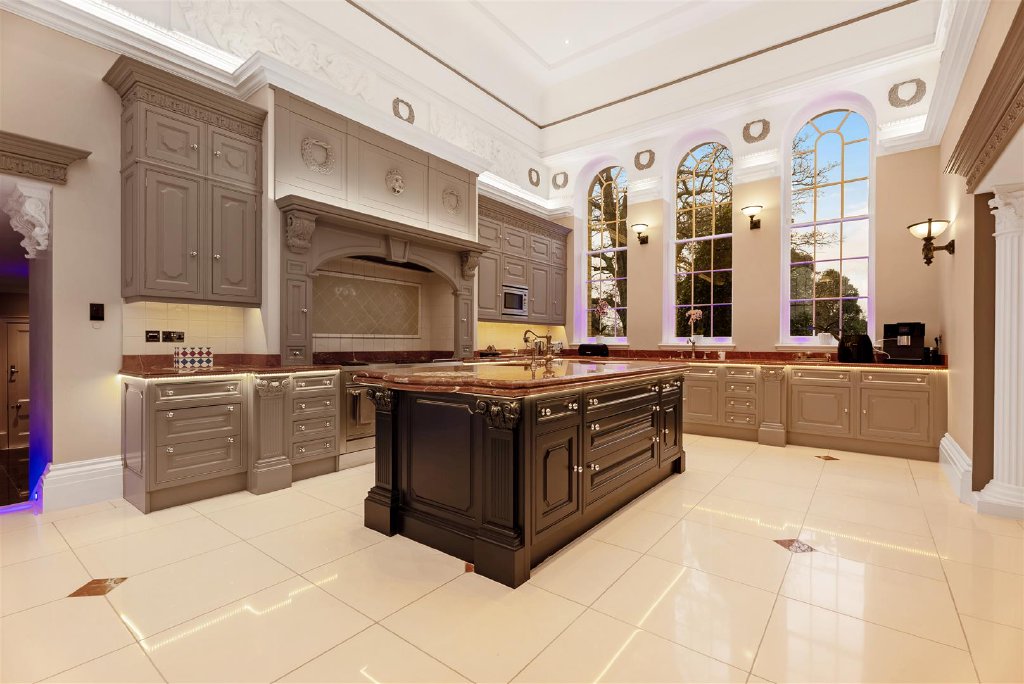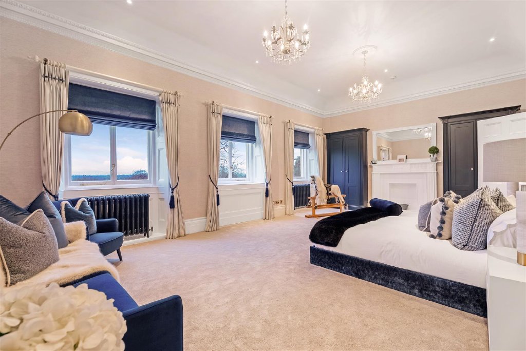 At the centre of family life sits the magnificent Clive Christian kitchen. With a dramatic double-height ceiling and expansive roof lights, it is both striking and supremely practical. A library mezzanine overlooks part of the breakfast area, creating a relaxed yet refined space for reading or quiet work. From here, the house opens effortlessly into the family room, which in turn leads directly into the newly refurbished swimming pool complex and annexe, perfect for year-round entertaining.