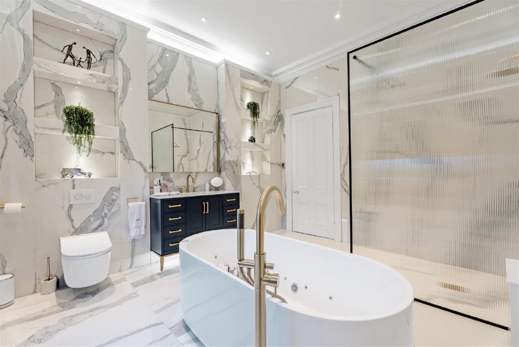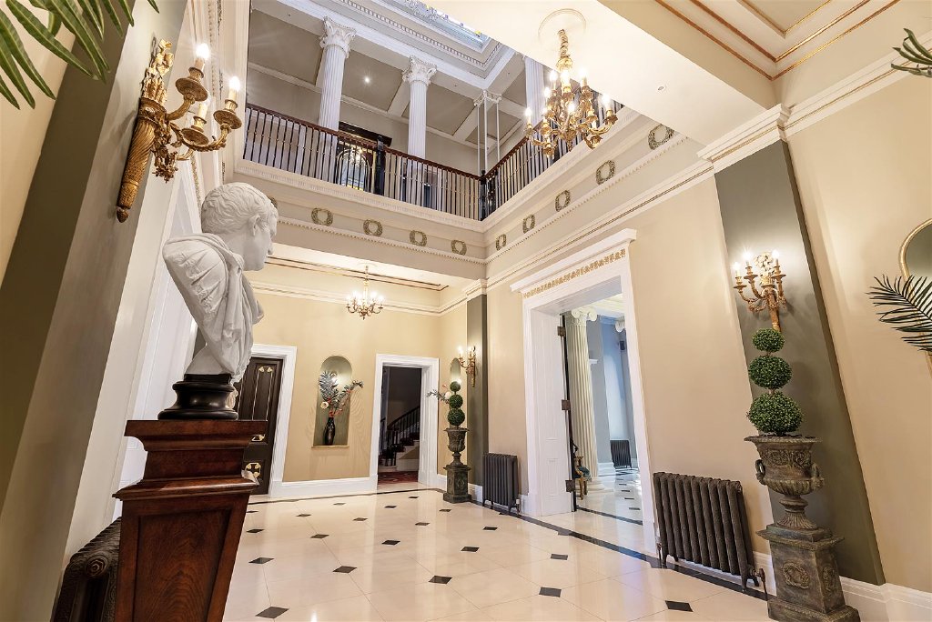 From the moment you step inside, the scale and elegance are unmistakable. The stately entrance and inner halls form the heart of the home, rising dramatically to a double-height gallery above. Limestone floors, intricate cornicing and domed ceilings create a sense of occasion, while original parquet flooring and open fireplaces add warmth and authenticity. Technology has been discreetly integrated, with underfloor heating to the ground floor and first-floor bathrooms, alongside Sonos audio and a Crestron
