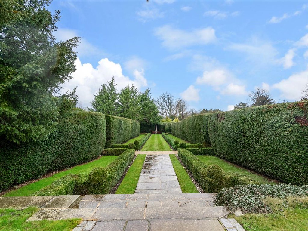 To the rear, the estate includes a secondary drive, tennis court, walled garden and an elegant garden pavilion to the west. To the east, a newly constructed machinery store, also suitable as a helicopter hangar, adds a discreet yet highly practical modern touch.