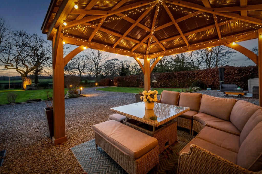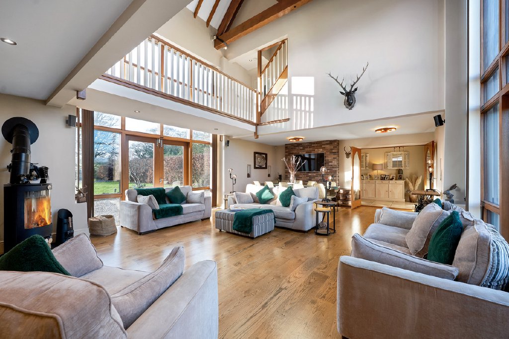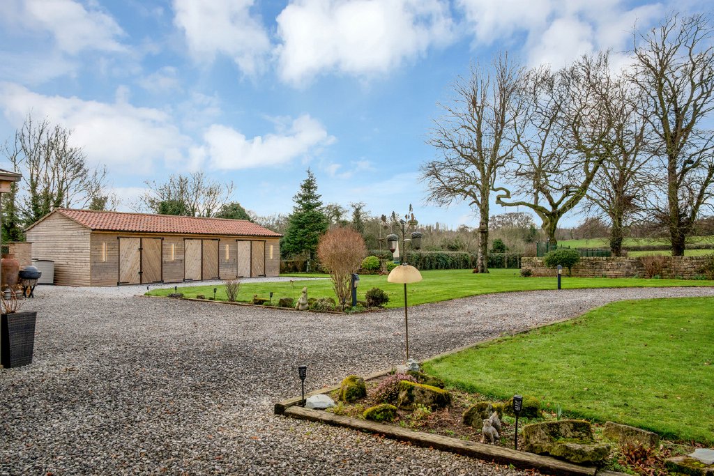 Occupying a plot of approximately 1 acre, Cauldwell House enjoys beautifully landscaped gardens befitting of this home. The property is accessed via a private road which leads on to a gravel laid drive that services the property and the parking area which has allocated parking and a double garage with loft space above. Much of the garden is found to the rear of the property. A raised paved terrace leads off the garden room which offers a fantastic entertaining space and vantage point to enjoy the gardens and open fields beyond. The remainder of the garden is predominantly laid to lawn and enhanced by mature trees, established hedging & shrubbery and a selection of bedded plants. There is useful secondary access to the rear of the property via a further gravel laid drive which leads to a recently constructed timber frame 4 car garage – the perfect addition for car enthusiasts or those seeking useful storage.