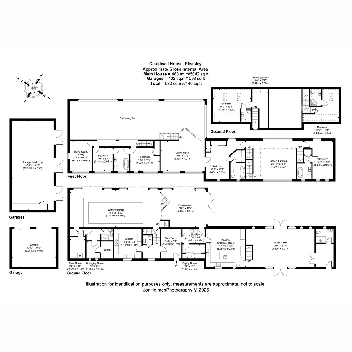 Offering an abundance of accommodation arranged across 3 floors, the ground floor of Caudwell House comprises of; Entrance hall, open plan living/ dining room with vaulted beamed ceilings and galleried landings, breakfast kitchen, utility with additional drying room, leisure facilities, a fully fitted boot room, annexe kitchen, shower room and a WC. To the first floor; feature galleried landing, master suite with dressing area, bathroom and mezzanine living space, 3 further double bedrooms, sitting room/ study, en-suite and a Jack-and-Jill bathroom servicing two of the bedrooms. To the second floor there is a further galleried landing with reading/ study area and two double bedrooms which both benefit from en-suites.