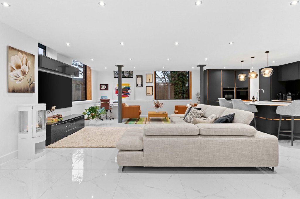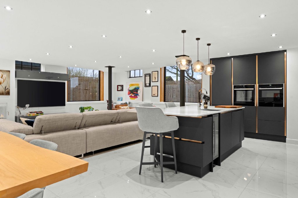 On the first floor, there are three double bedrooms all served by underfloor heating throughout the home. The principal bedroom includes a dressing area and en-suite shower with the second bedroom also benefits from an en-suite and a main bathroom features a freestanding bath and separate shower – all offering a boutique hotel feel. There is also useful loft space ideal for storage.