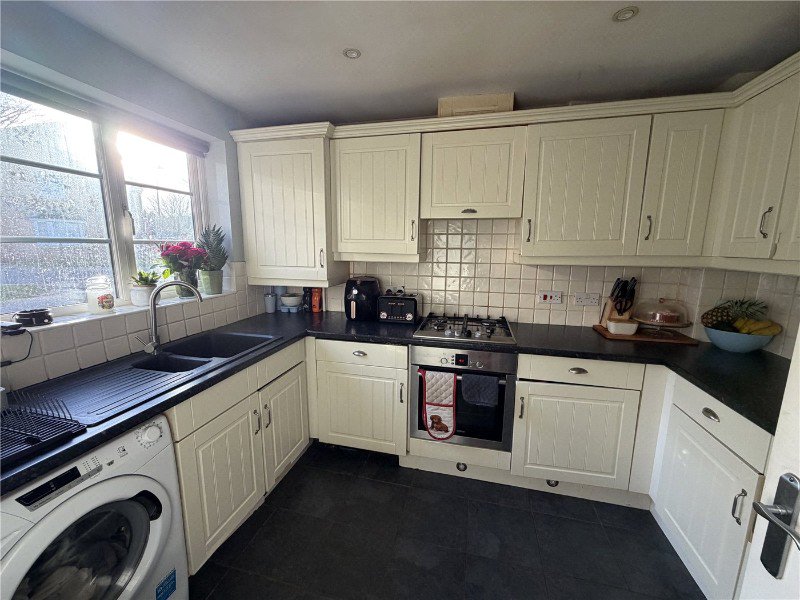 Located in a small cul de sac, by a pocket park, is this three bedroom end of terrace family home, offered to the market with no onward chain. The property which also benefits from having a garage, also benefits from having gas radiator heating and uPVC Double Glazing. The accommodation in brief comprises, front door to entrance hall. From the entrance hall, doors lead to the cloakroom, kitchen and lounge/dining room. Stairs from the hallway lead up to the first floor. The kitchen comprises a range of units at eye and base level with worksurfaces over. There is an integrated over with four ring gas hob and extractor over. Space and plumbing for a washing machine and recess for an upright fridge/freezer. A uPVC double glazed window faces out to the front aspect. The lounge/dining room, offers a great entertaining room, and features uPVC double glazed French doors that lead out to the garden, with uPVC double glazed windows either side. Access to a useful understairs cupboard is also from the living room. The ground floor WC comprises a low flush WC and vanity sink with useful storage under.