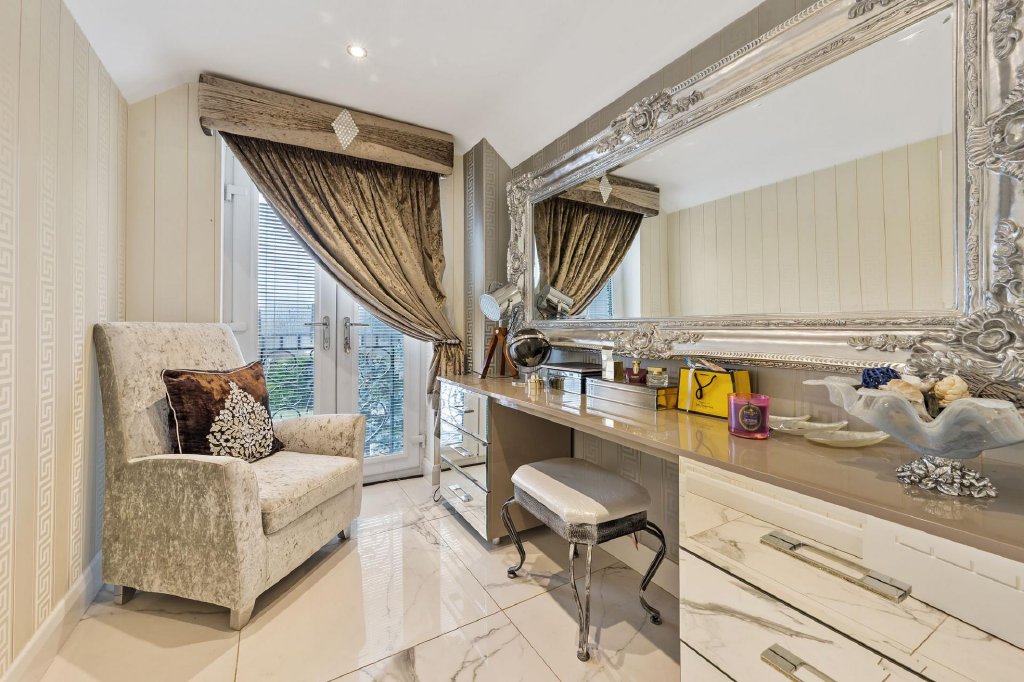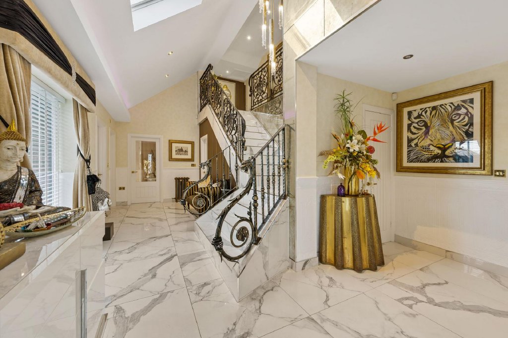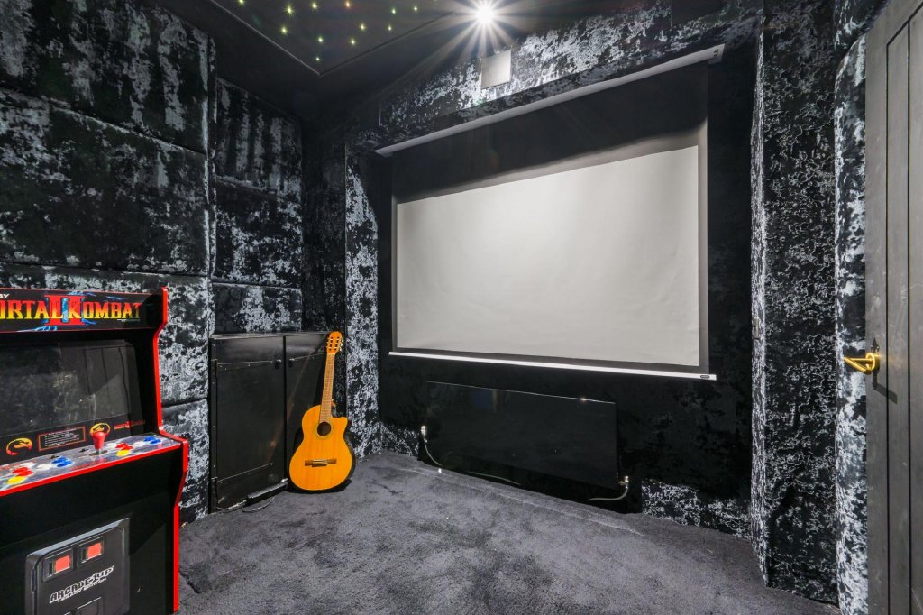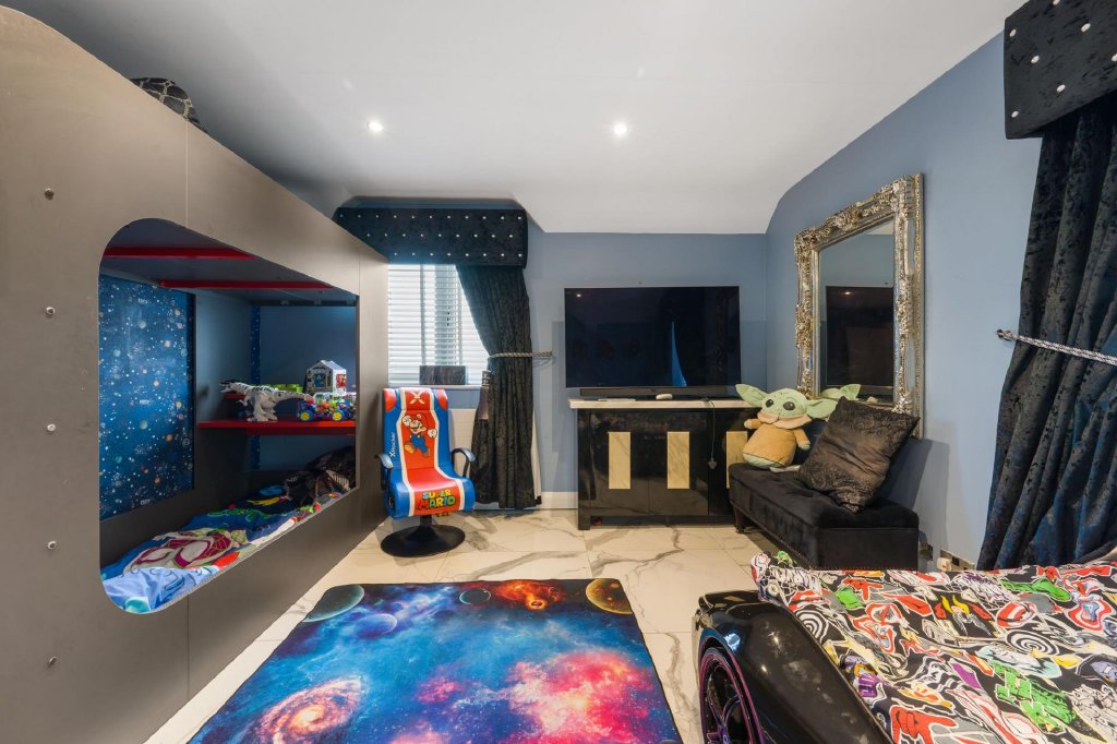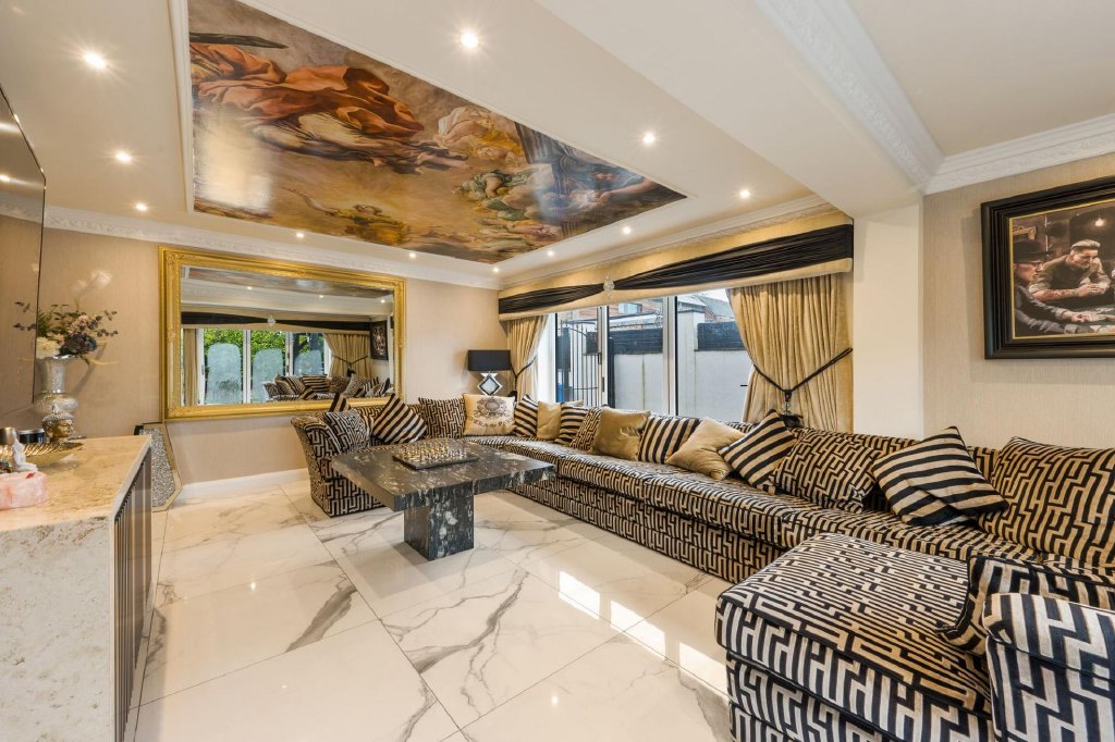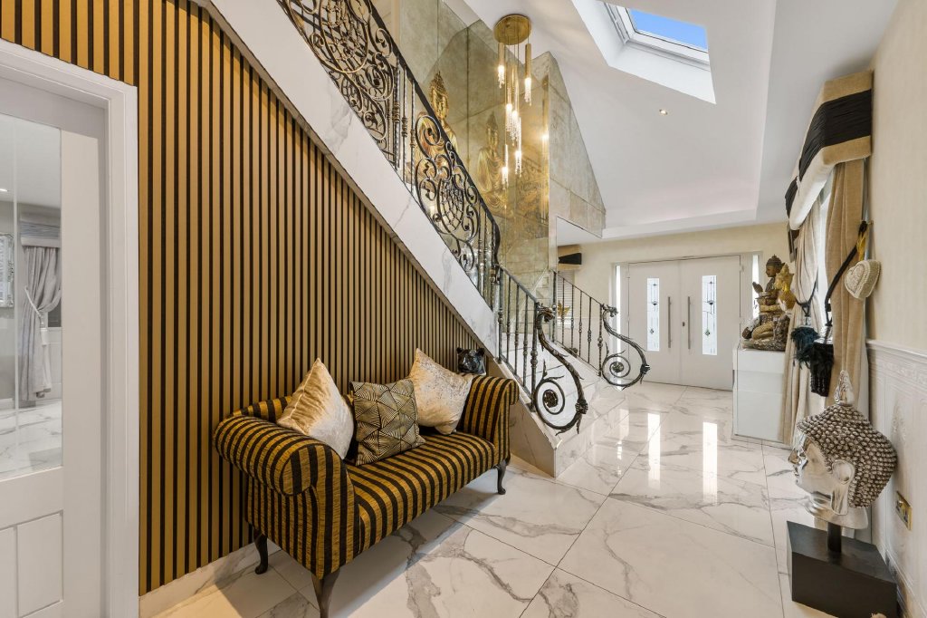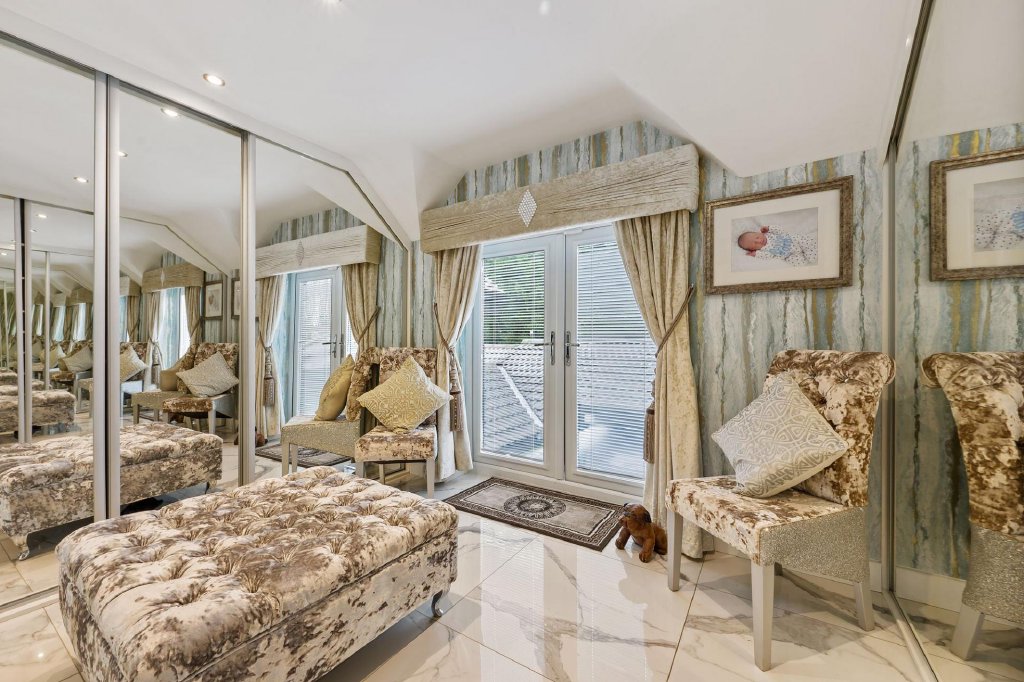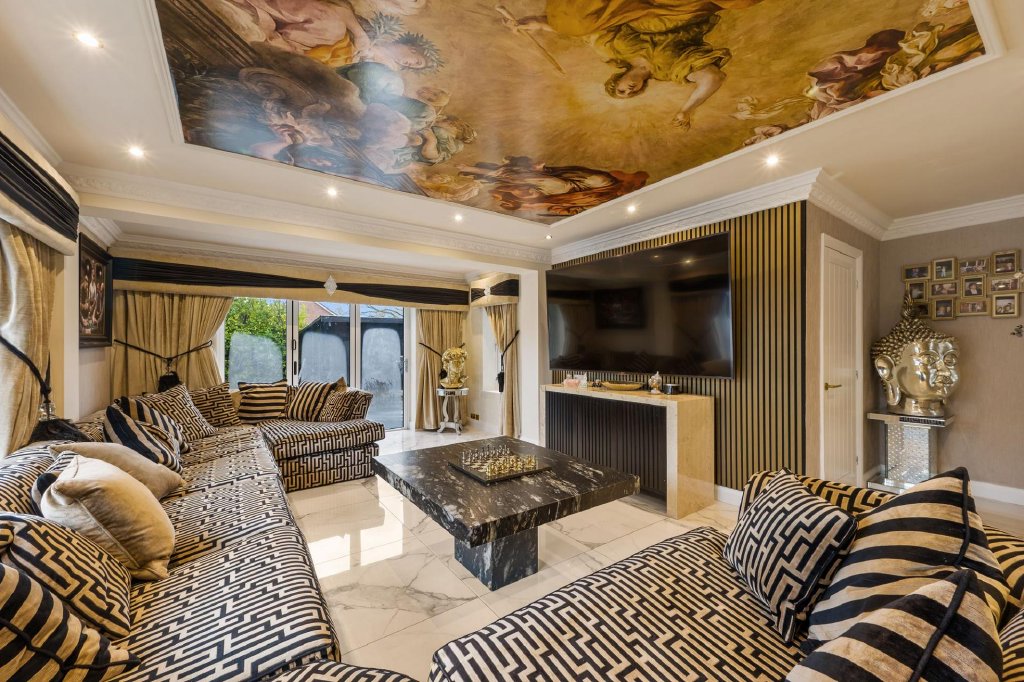 Designed for both grand-scale entertaining and everyday family living, the ground floor unfolds into an array of indulgent reception spaces. These include a dual-aspect formal lounge, a fully soundproofed cinema room, a bespoke karaoke room, and a unique ‘Big Brother’ style soundproof pod—ideal as a children’s den, studio or private retreat. A further versatile reception room offers flexibility for use as a home office, playroom or gym.