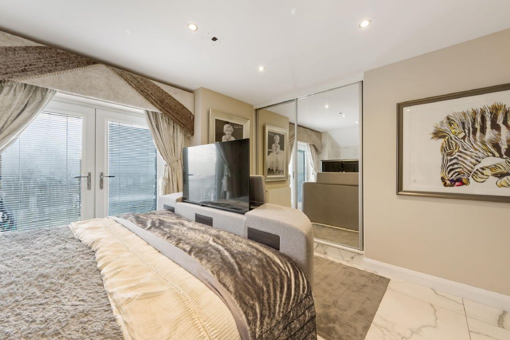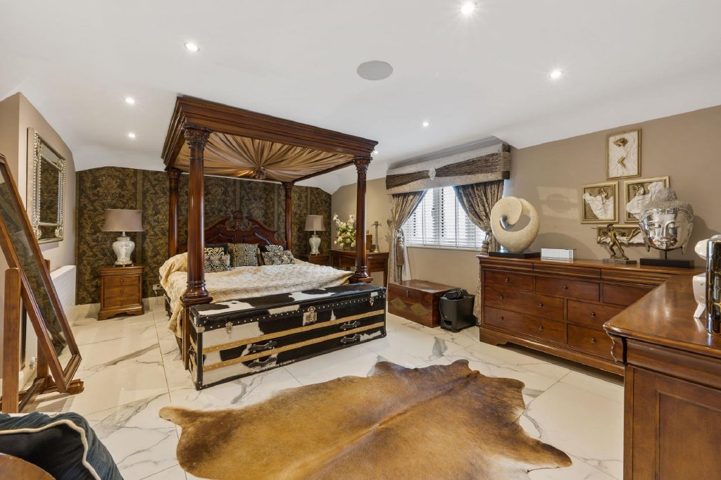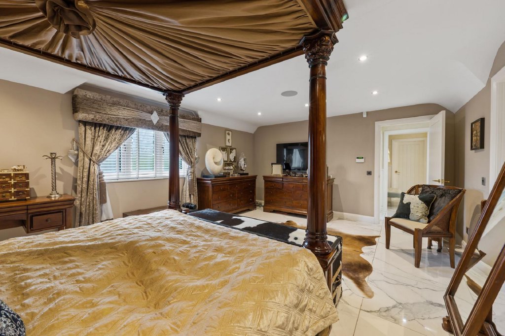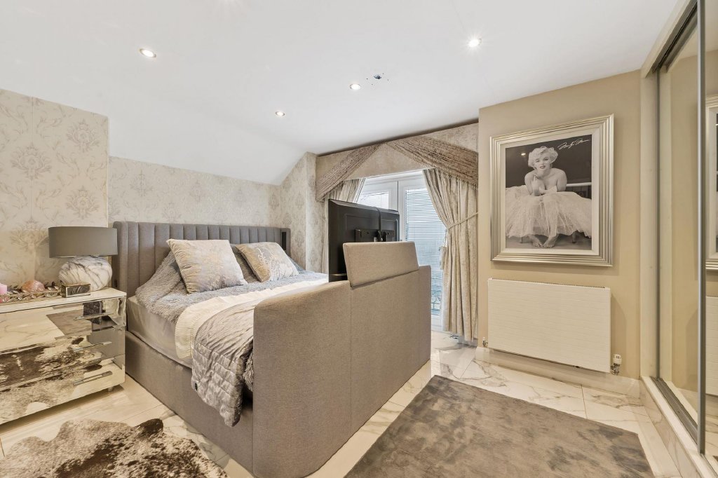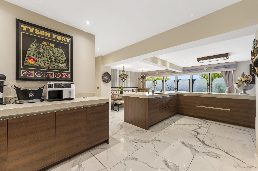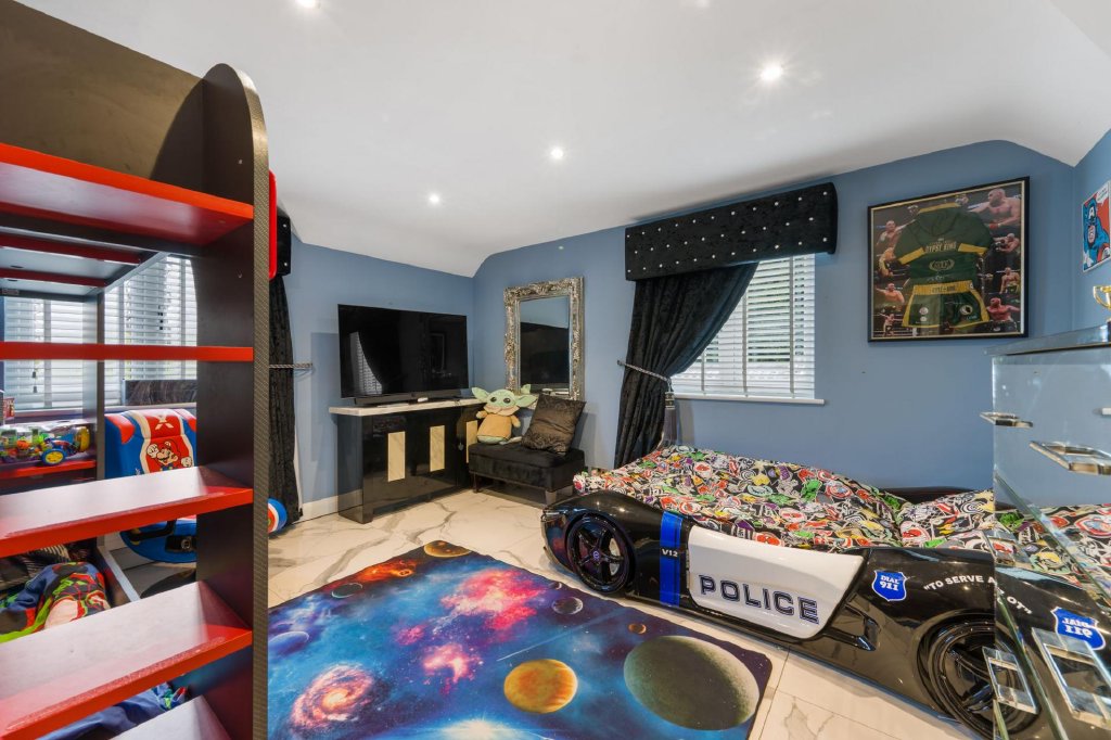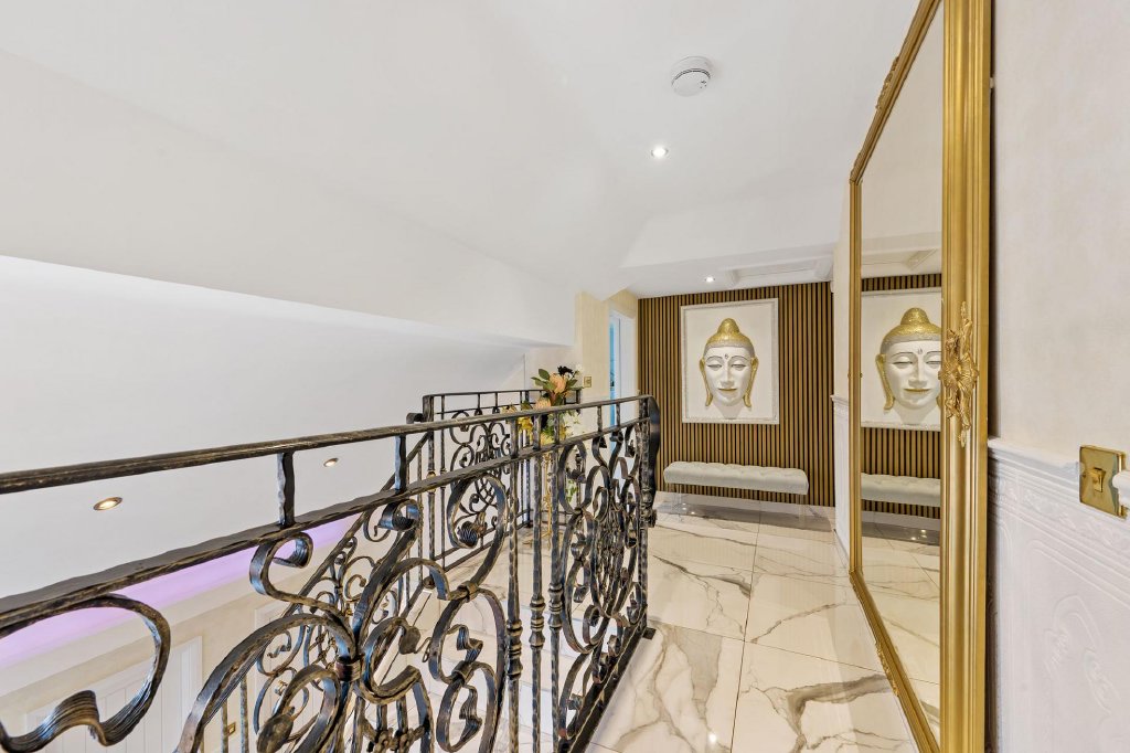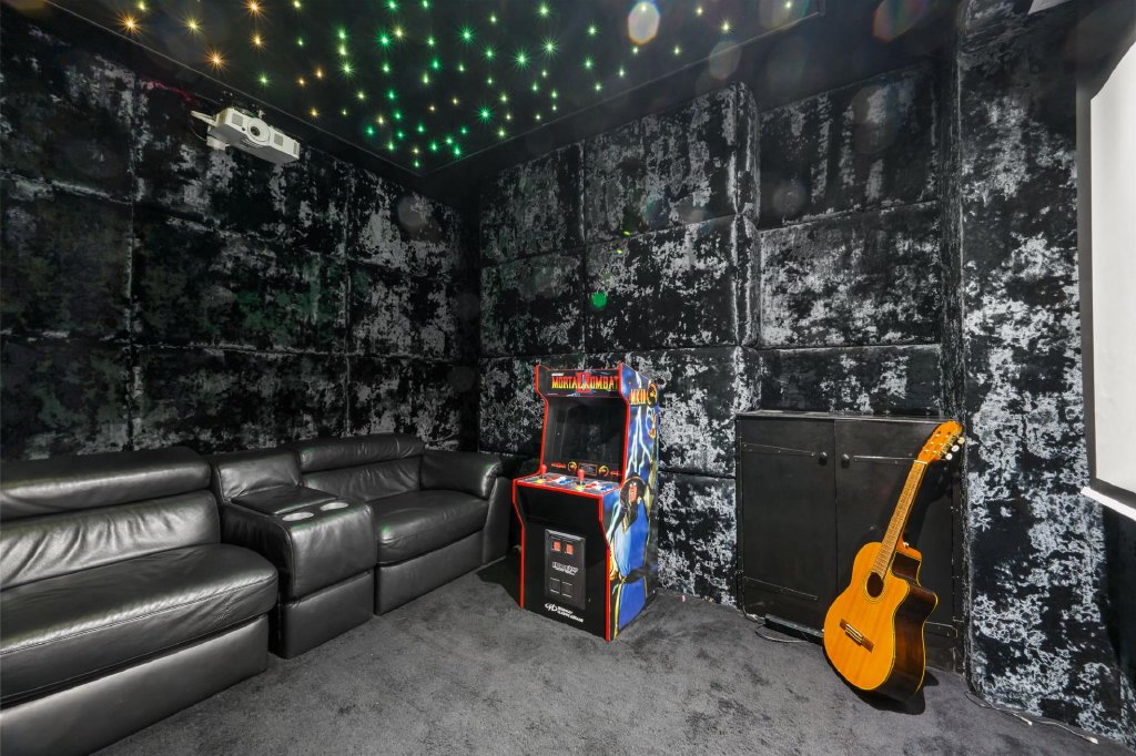 Designed for both grand-scale entertaining and everyday family living, the ground floor unfolds into an array of indulgent reception spaces. These include a dual-aspect formal lounge, a fully soundproofed cinema room, a bespoke karaoke room, and a unique ‘Big Brother’ style soundproof pod—ideal as a children’s den, studio or private retreat. A further versatile reception room offers flexibility for use as a home office, playroom or gym.