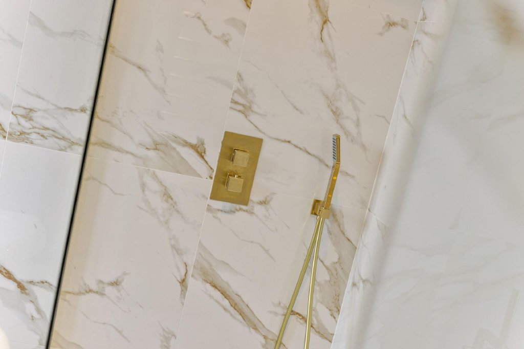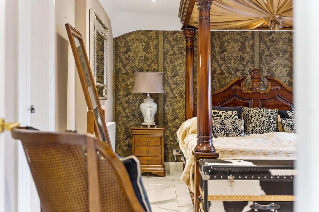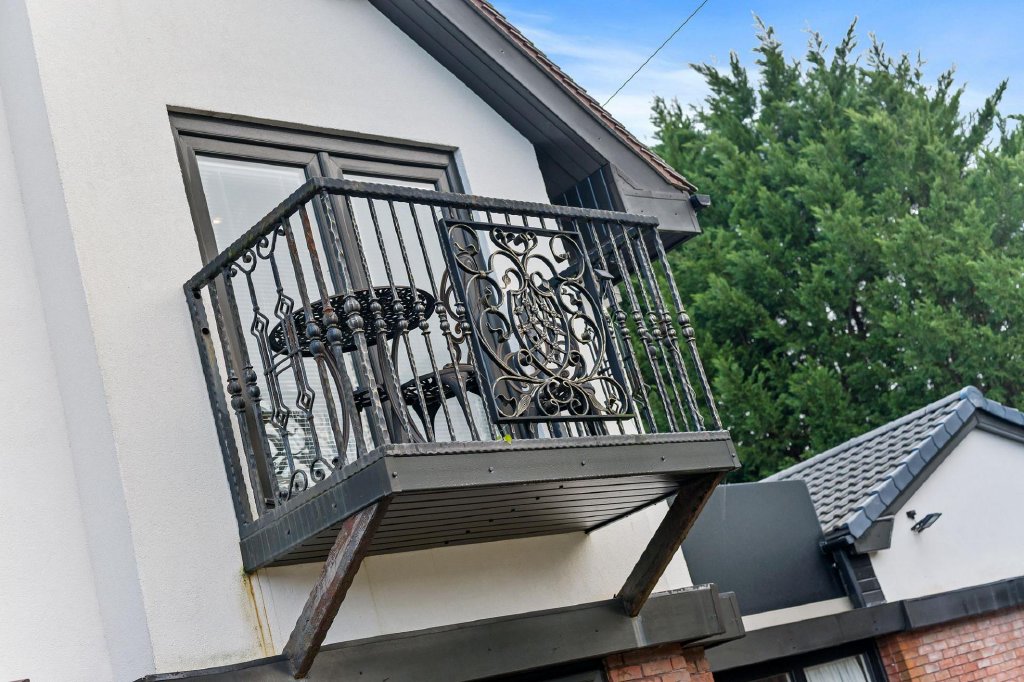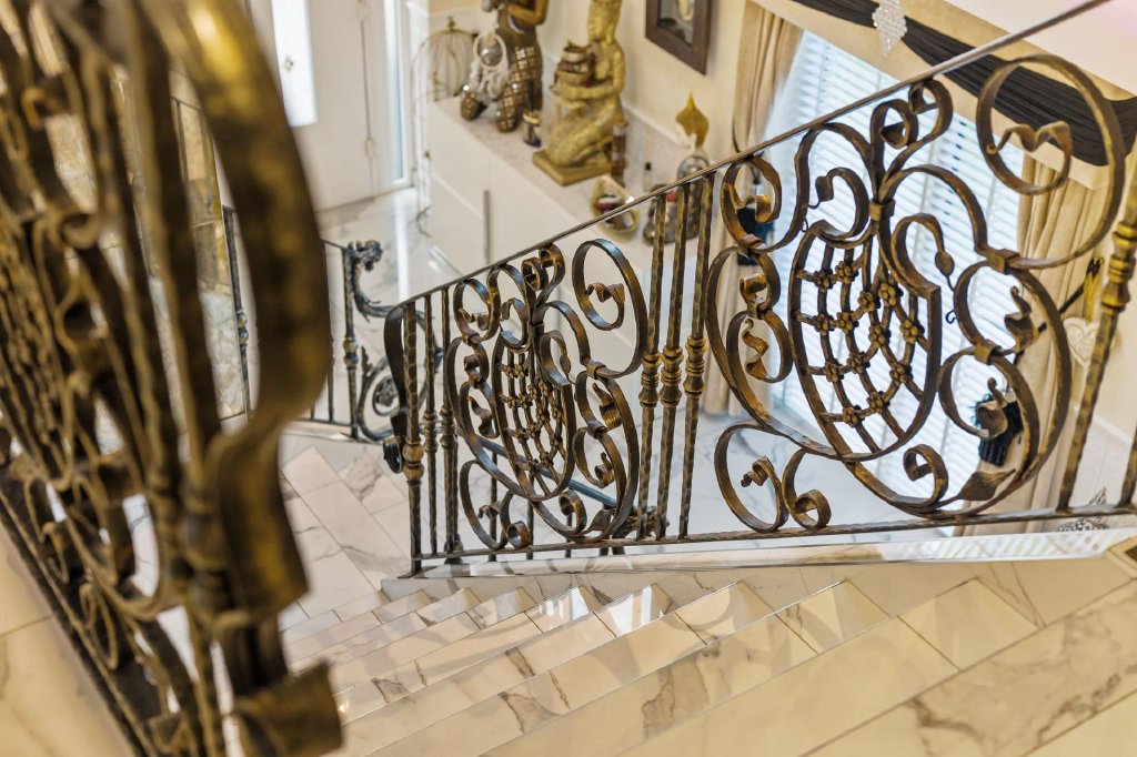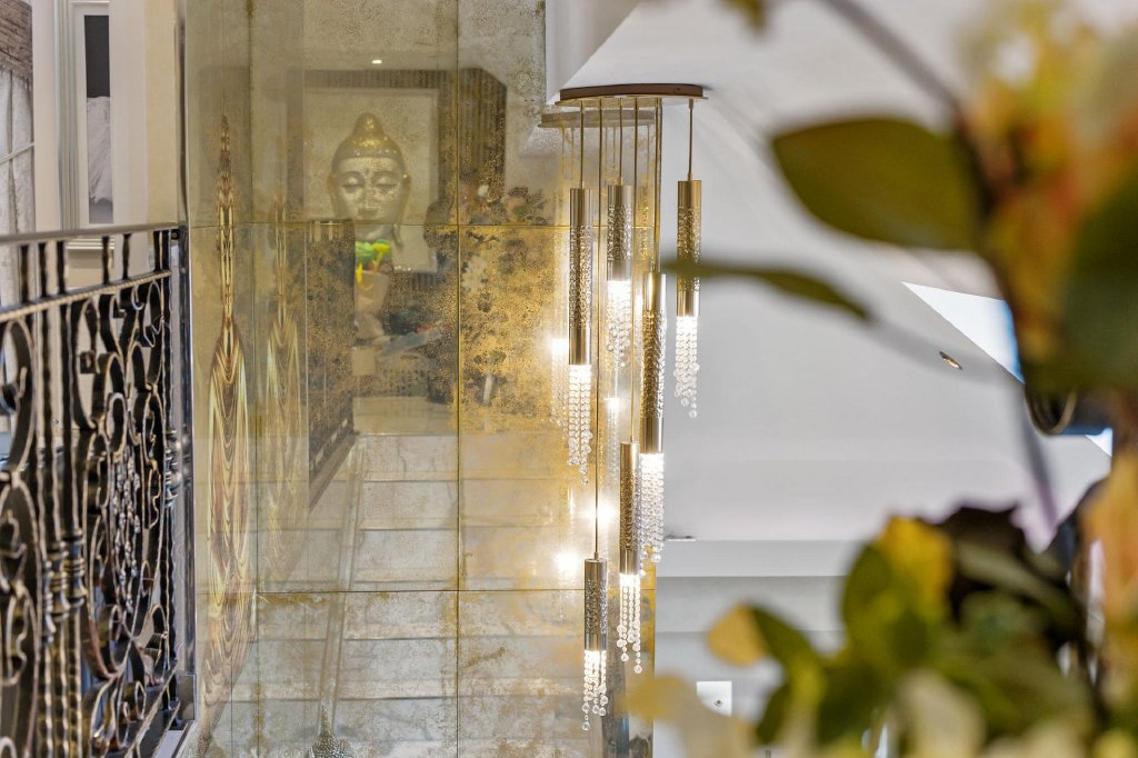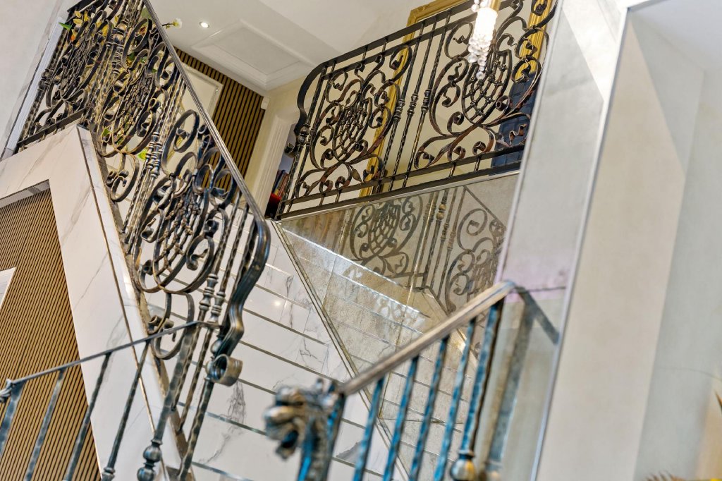 The accommodation is introduced by an impressive entrance hall, flooded with natural light and crowned by a striking mezzanine gallery. A dramatic wrought iron staircase, antique mirrored feature wall and polished porcelain flooring set a bold and elegant tone that continues throughout the home.
