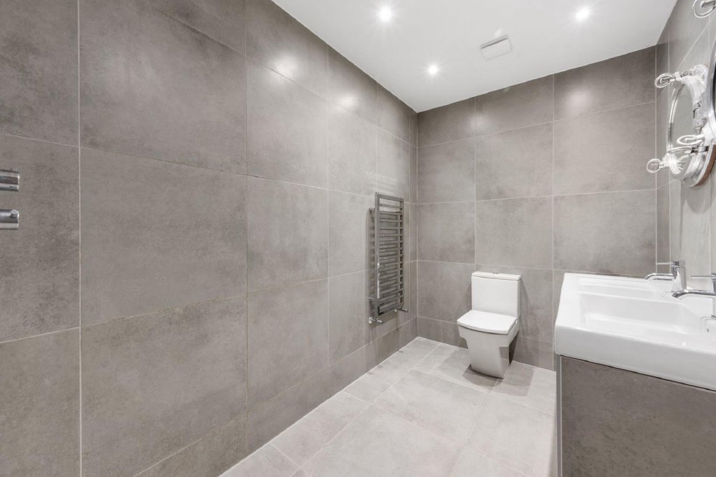 To the first floor, the property continues to impress with four beautifully proportioned bedrooms. The principal suite is a serene retreat, enjoying dual-aspect views and a luxurious dressing room which could easily be reinstated as a fifth bedroom if desired. A further bedroom, currently used as a bespoke dressing room, opens onto a private rooftop garden terrace—an enviable suntrap ideal for relaxation. Additional bedrooms are equally generous, including one with a Juliette balcony overlooking the front elevation.