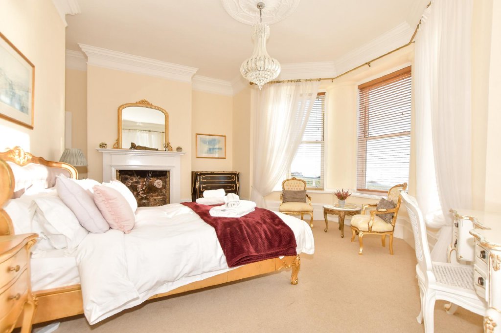 Interestingly the house is not listed but it does include some stunning period features including high ceilings, spacious well-proportioned rooms, bay windows, panelled doors and fireplaces. However many other features have been restored, replaced or reinstated by the current owner. These include ornate coved ceilings, elegant arches and plasterwork, attractive ceiling roses, high skirtings and oak flooring. At the same time it has been modernised to provide everything needed for contemporary living including building a two storey extension and creating a spacious self-contained one bedroom apartment on the lower ground floor with independent access. To provide even more interesting accommodation and views there is also an attractive and well equipped Airstream caravan serviced by adjacent contemporary shower and toilet facilities and, virtually at the cliffs’ edge, you will find an outdoor kitchen and a decked ‘lookout’ terrace.