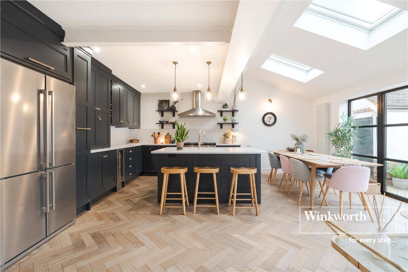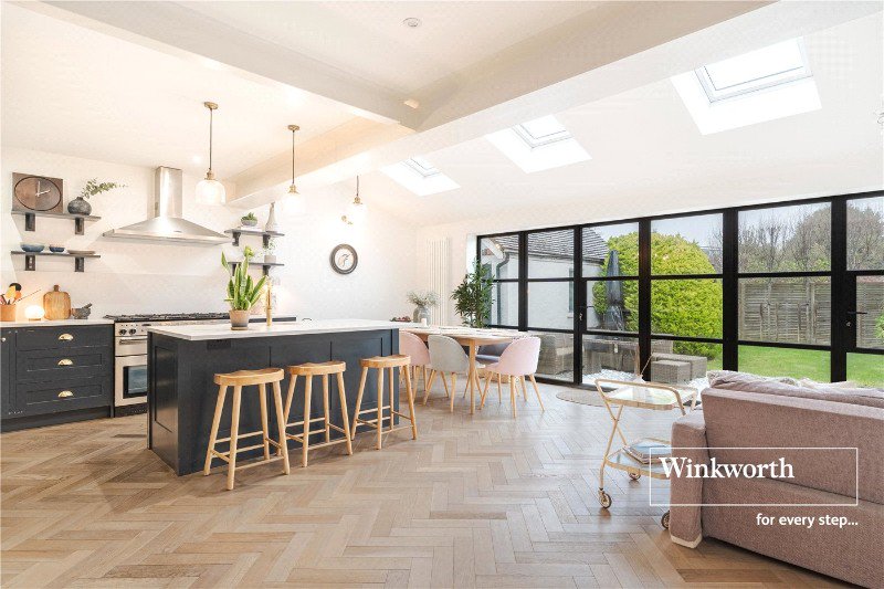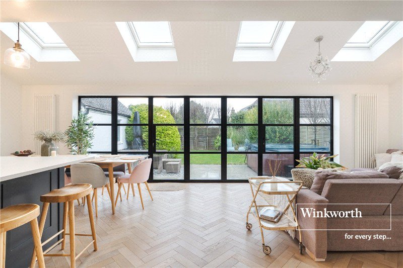 This exceptional family home has undergone extensive modernisation by it’s current owners which includes a modern family / dining / day room which is flooded with natural light and wooden flooring running throughout. The modern kitchen incorporates a range of cabinets, integrated appliances, and a range-master style cooker with stylish counter tops to complement. This light and spacious area provides ample space for dining and lounge furniture with two sets of double doors giving direct access to the rear garden. There are a further two reception rooms, utility room and shower room also located on the ground floor.