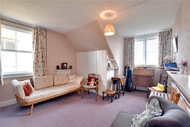 Finally, the top floor provides two further double bedrooms beneath the eaves, along with a separate study and a shower room, creating an ideal set-up for older children, guests or a quiet work-from-home level. The front rooms again benefit from those lovely views over the green.