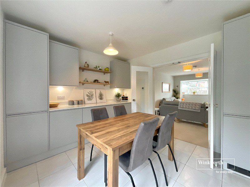 A modern kitchen/diner running across the rear of the property with French doors opening out onto the garden. The kitchen units were installed in 2023, fitted with quartz worktops, integrated fridge freezer, dishwasher, washing machine and bin. Also, a boiling water tap and filtered water tap have been fitted.