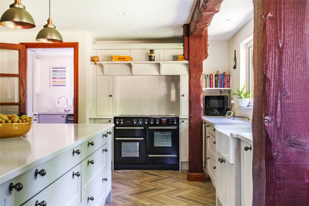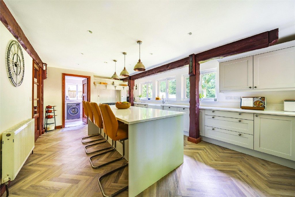 The large newly fitted bespoke kitchen, complete with Quartz worktops and top-of-the-line appliances, is a chef's dream and a focal point for entertaining guests.