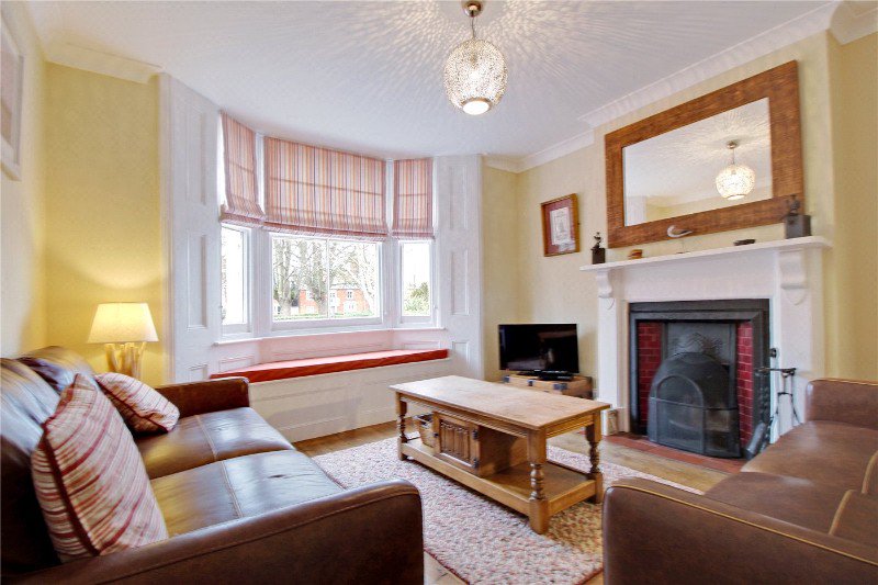 The sitting room to the front offers a bay window with a window seat looking out towards the green and the focal point for the room is an attractive Adam style fire surround with inset hearth.