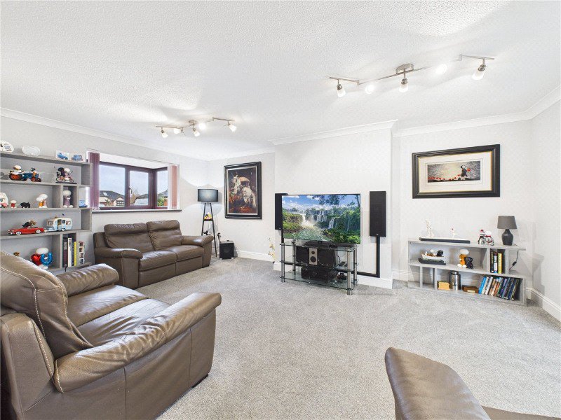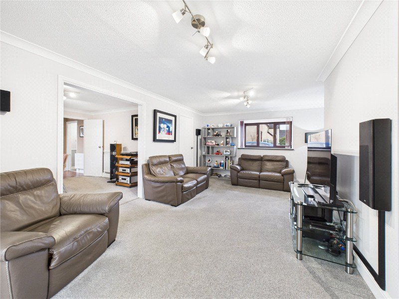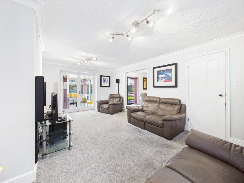 The ground floor provides excellent space for both everyday living and entertaining. A large living room sits at the heart of the home with double doors opening into a bright sunroom, ideal as a relaxing sitting area or garden room. There is also a dedicated dining room, perfectly positioned alongside the kitchen, creating a practical layout for family meals and hosting.