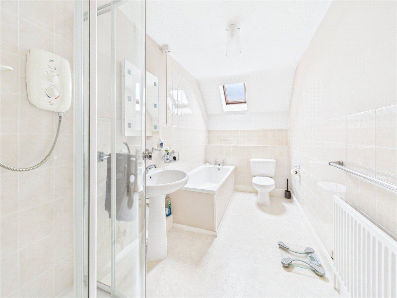 Upstairs, the property offers four well-proportioned bedrooms, including a generous principal bedroom with its own en-suite shower room. A modern family bathroom serves the remaining bedrooms, making the first floor ideal for families or those needing guest space.
