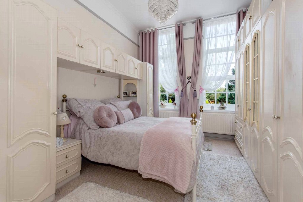 The two double bedrooms overlook the front aspect and benefit from an abundance of natural light through the tall windows. The principal bedroom enjoys the added luxury of an en-suite bathroom, complete with a roll-top bath and separate shower enclosure.