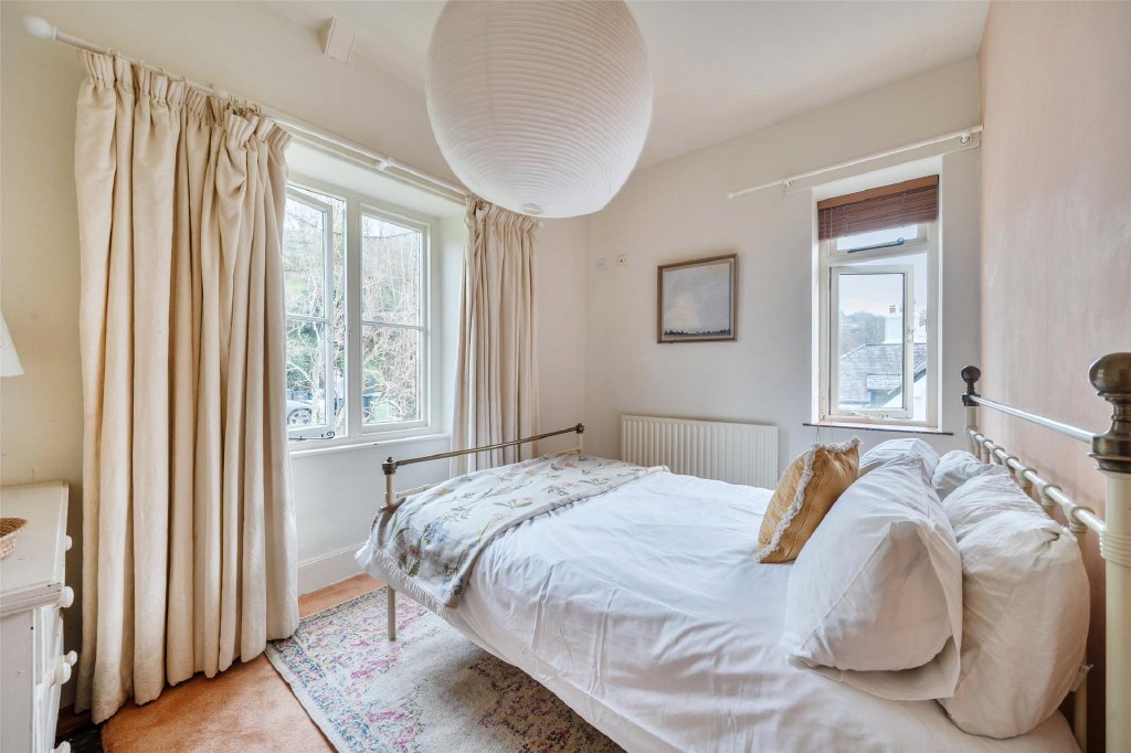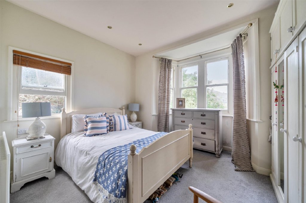 An elegant staircase rises to a half landing with cloakroom facilities and continues to the first floor, where four beautifully proportioned double bedrooms are arranged, each benefitting from its own en-suite. From these rooms there are delightful views across the gardens and the surrounding wooded valley.