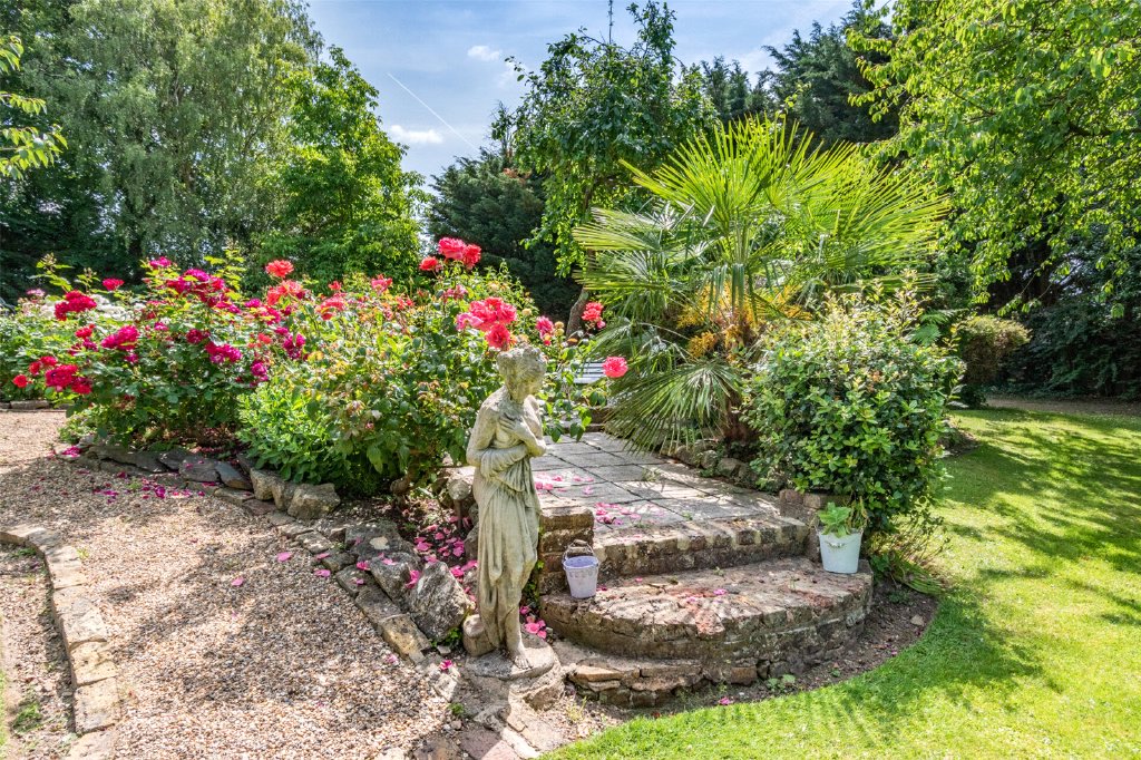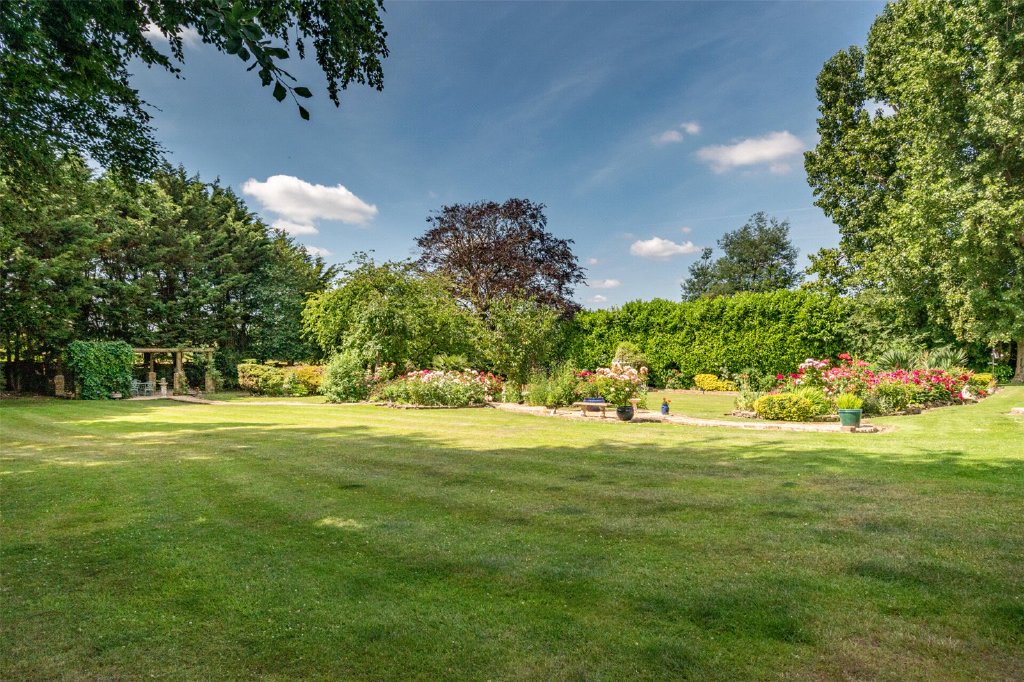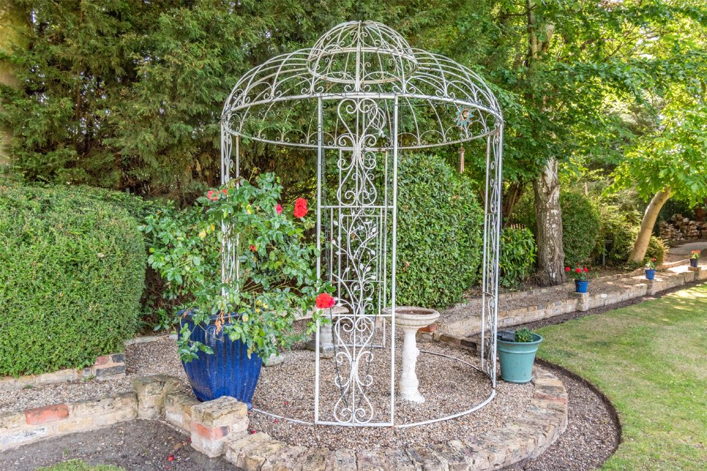 To the rear is a manicured parklike garden laid to lawn with well established flower borders and an ideal haven and perfect outside entertaining space. There are various roses and other plants that bring colour to this space along with various elements that include a sand stone patio and pathways that lead you to different elements.