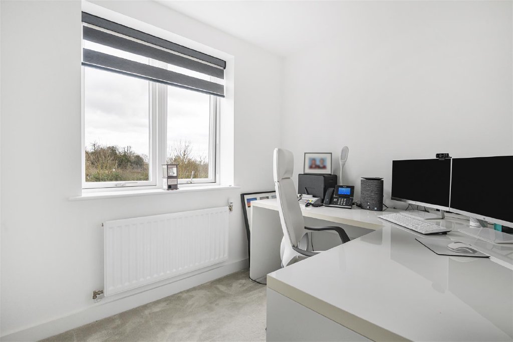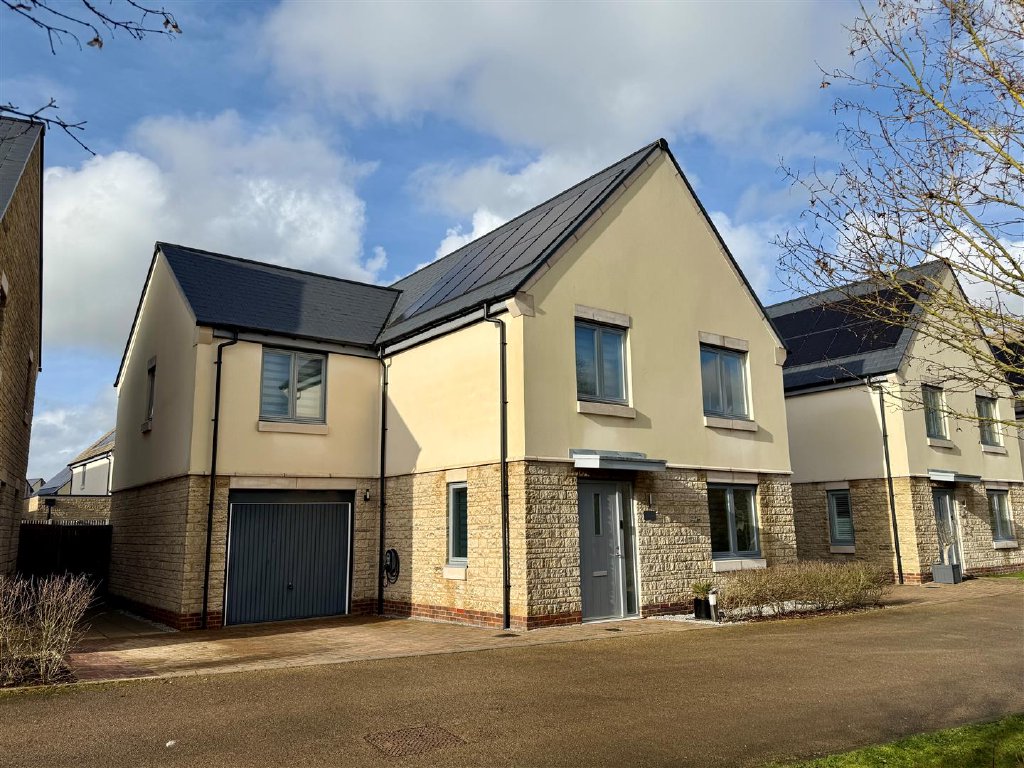 A superbly presented five-bedroom detached family home with a range of high quality upgrades including Amtico flooring (where stated), made to measure remote control blinds, Bosch appliances, and Silestone work tops, located in a quiet cul-de-sac on the award-winning eco-village of Elmsbrook on the outskirts of Bicester town centre. The property briefly comprises; entrance hallway, spacious living room leading through to a kitchen/dining room, inner hallway leading to a separate utility/cloakroom, study, courtesy door leading into a good size garage with light & power. On the first floor there are five very good size bedrooms with en-suite and built in wardrobes to the master bedroom and a separate family bathroom. Additional benefits of this eco-friendly home are solar panels and triple glazed windows offering energy efficiency and cost savings. Outside, the property has a block paved driveway for 2 cars leading to a large single garage providing secure parking and gated side access leading to a enclosed rear garden with storage facilities. An early appointment to view comes very highly recommended.