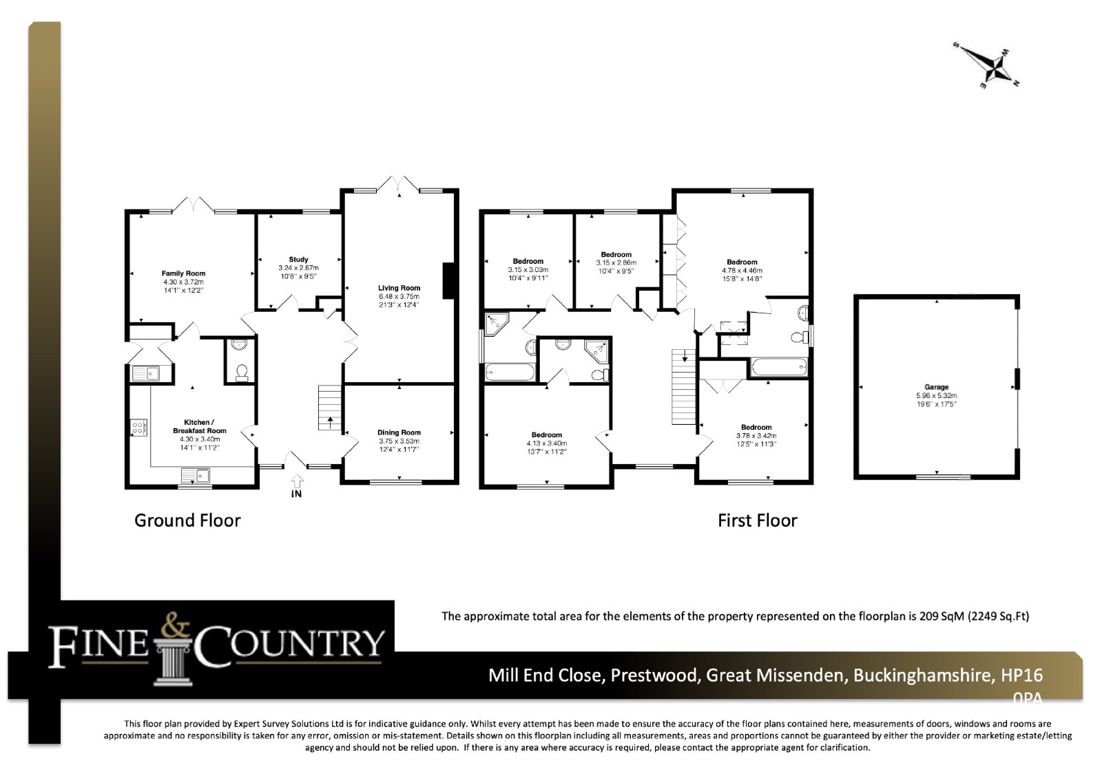 To the first floor, a spacious gallery landing leads to five well appointed bedrooms. The principal bedroom enjoys views over the rear gardens and features an extensive range of fitted wardrobes, a walk-in storage cupboard and a luxurious en suite bathroom with both bath and separate shower. A guest bedroom also benefits from its own en suite shower room, while the remaining three bedrooms are served by a well appointed family bathroom with bath and separate shower.