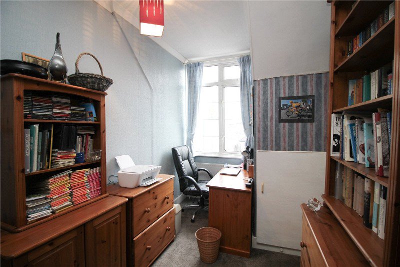 Bedroom: - 12’9 x 11’3. (restricted height). Double glazed window to front. Radiator