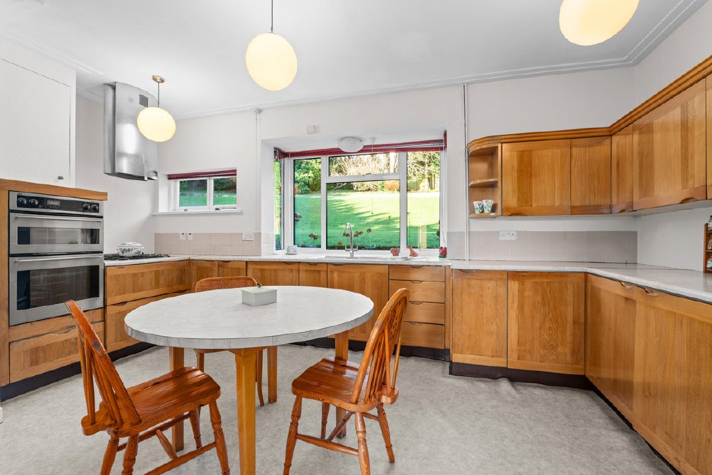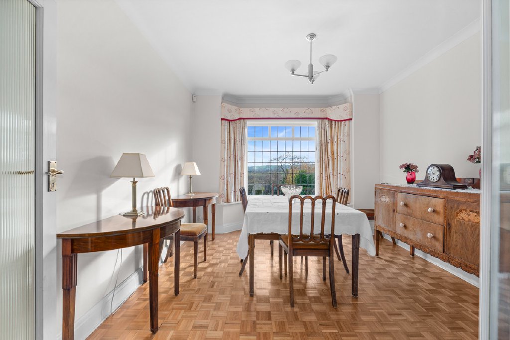 The dual aspect drawing room features a marble fireplace with wood burner, patio doors to the rear garden and a beautiful outlook to the front with breathtaking views. The light and airy dining room again has stunning views through its leaded light bay window.