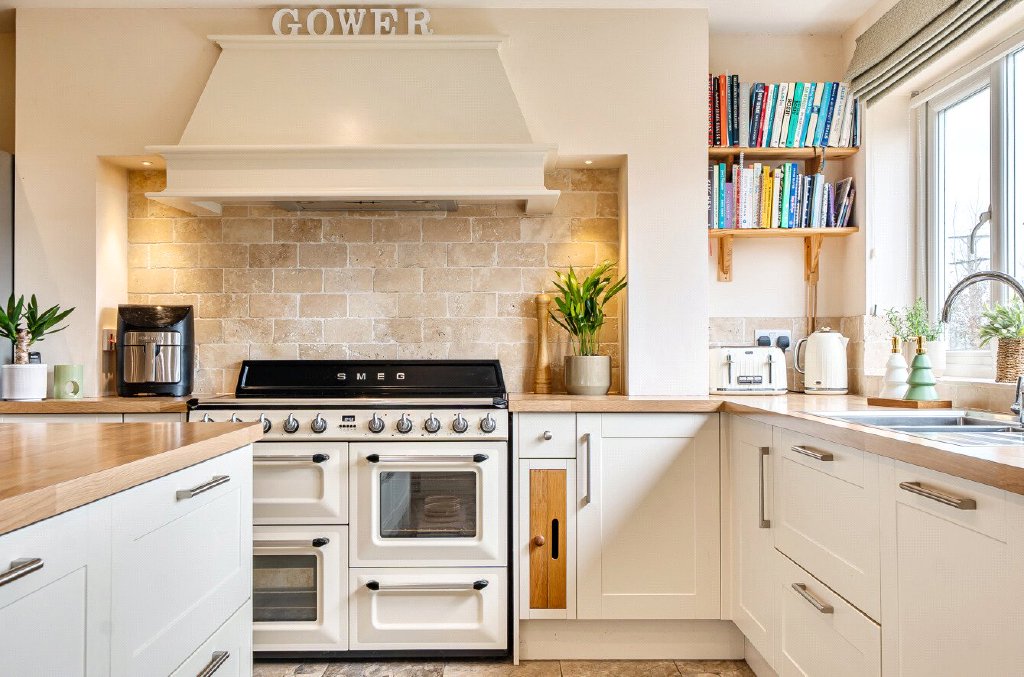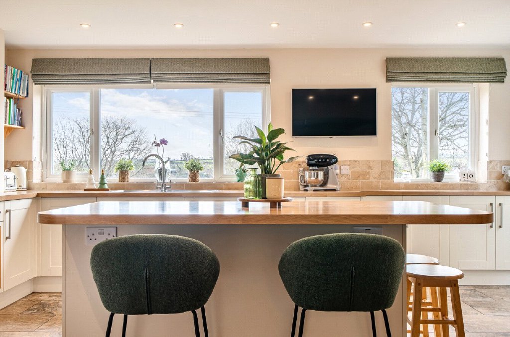 Arranged over two floors, the house follows a traditional layout, with generous living accommodation on the ground floor and bedrooms and bathrooms above. The first floor offers four well-proportioned bedrooms, including a principal bedroom with en-suite, along with a family bathroom. On the ground floor, a spacious kitchen/diner, sitting room, utility room and WC provide excellent everyday living and entertaining space. ‘In 27 years of living here, there is nothing that we haven’t changed throughout the house. The highlight, however, has been the creation of the wonderfully spacious kitchen and dining area, now truly the heart of the home,’ say the owners. They note, ‘all the rooms are generously sized, but the original kitchen was let down by its smaller proportions. It has now been transformed to support the house, family and entertaining in a far more balanced and practical way.’