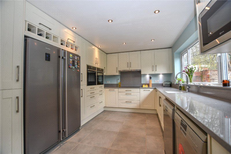 As you enter this immaculate property you are welcomed into the hallway which has been tastefully decorated and sets the tone for the rest of the home. Leading off the hallway is the large living room with a bay window and feature brick fireplace and the study, which has been converted from the garage, is perfect for modern day living providing a place to work from home. To the rear of the property is a lovely cotemporary kitchen/diner overlooking the garden and accessed through a sleek glazed pocket door. The kitchen is complemented by Quartz worktops, Neff appliances, space for an American style fridge freezer, tiled Italian porcelain flooring and a central breakfast bar. Rounding off the ground floor accommodation is a more formal dining area, utility room and downstairs cloakroom. The property still retains a storage space where the garage used to be for bikes, golf equipment etc.