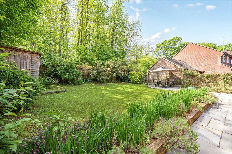 The beautifully landscaped rear garden is designed for both relaxation and entertaining, with defined zones including slate patios, a retained lawn and sleeper-edged borders. Two generous seating areas create ideal spaces to unwind. With side access, storage and a rear gate opening directly onto countryside and woodland walks, the garden combines practical features with privacy, charm and a strong connection to the outdoors.