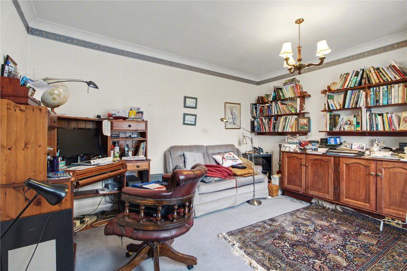 The kitchen is well-equipped and sits adjacent to the dining room, offering clear potential to be combined into a contemporary open-plan arrangement. Alternatively, given the size of the plot, there is scope to relocate and extend the kitchen to the rear, subject to the necessary consents, fully maximising the garden outlook.