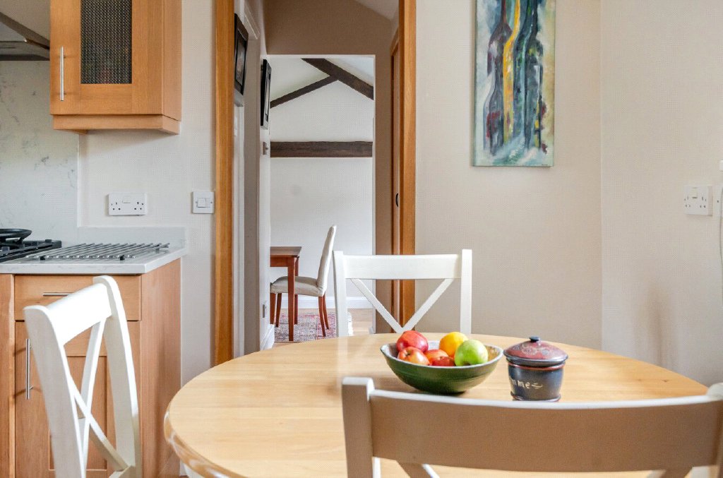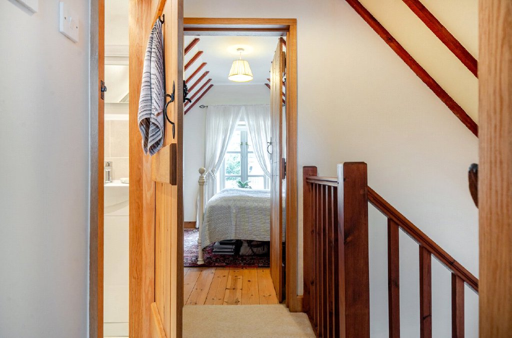 Converted from 19th-century farm buildings around 1999–2000, it blends rustic character with modern convenience. ‘We chose the house for its charm and solidly built traditional style and a wonderful walled garden providing privacy,’ explain the owners. They add, ‘the annexe is a real asset, providing space for family and visitors.’ Designed for both family life and entertaining, the ground floor includes a dining room flowing into the kitchen passed a utility, leading onto the hall and sitting room. A double bedroom with en suite, a smaller bedroom currently used as a study, and a bright conservatory complete this floor. ‘The conservatory is in use all year except when temperatures are below freezing. It’s south-facing so gets plenty of sun but has good ventilation and is even better when the glass doors are thrown open.’ Upstairs, two further bedrooms and a family bathroom provide comfortable accommodation.
