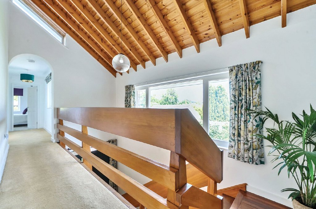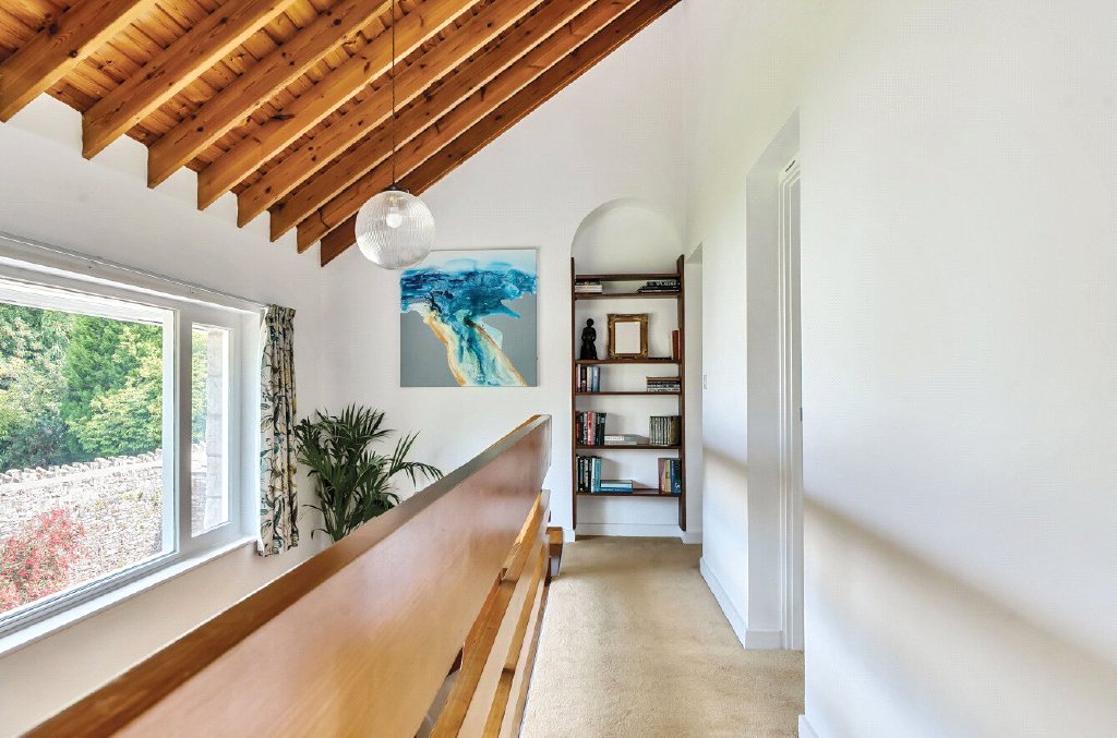 Set in the heart of the village of Chilcompton, Moorlands is a distinctive detached home with a unique Swiss chalet feel. Built in 1967 from Purbeck stone and cedar wood, the house was originally commissioned for a local MP and later became home to a naval architect and local artist for over 40 years. Its south-facing position makes it an architectural rarity on The Street, perfectly designed to maximise natural light, while the thoughtful overhang keeps the ground floor cool in summer.