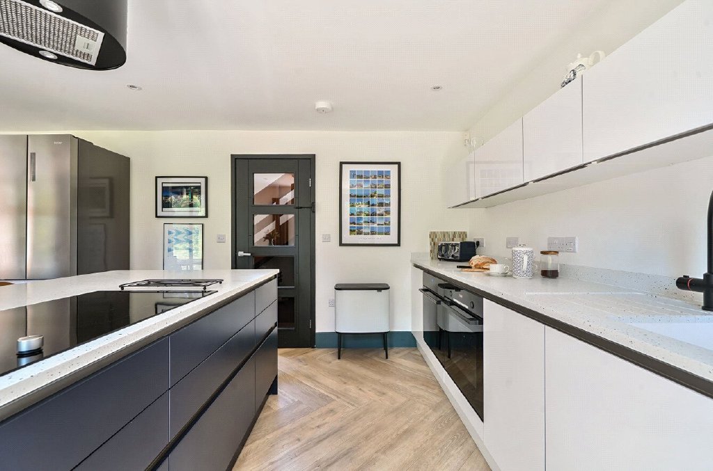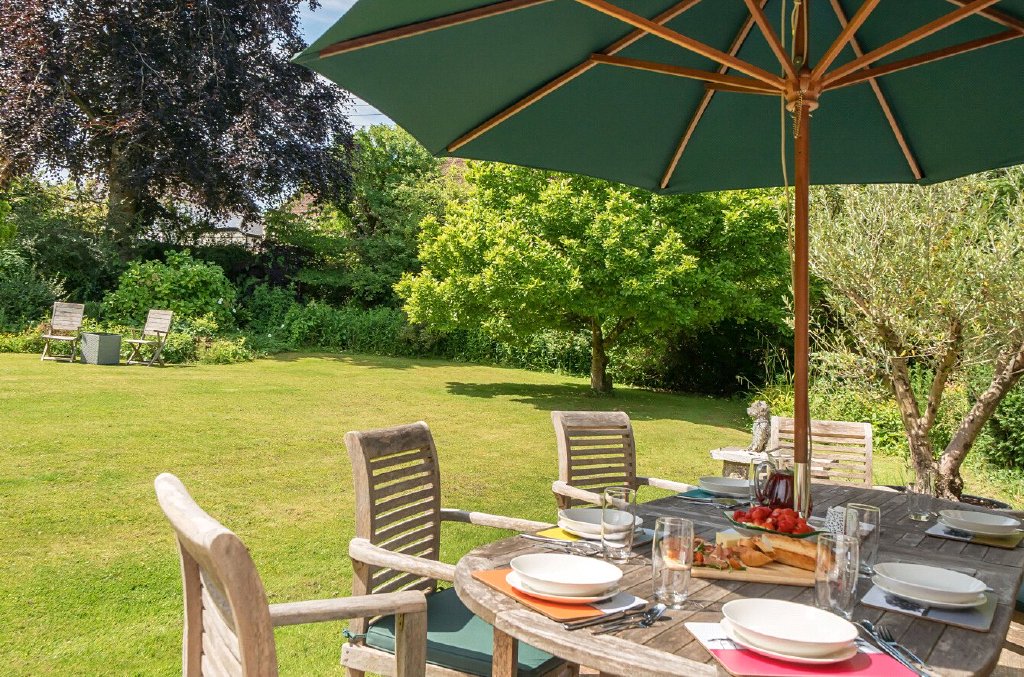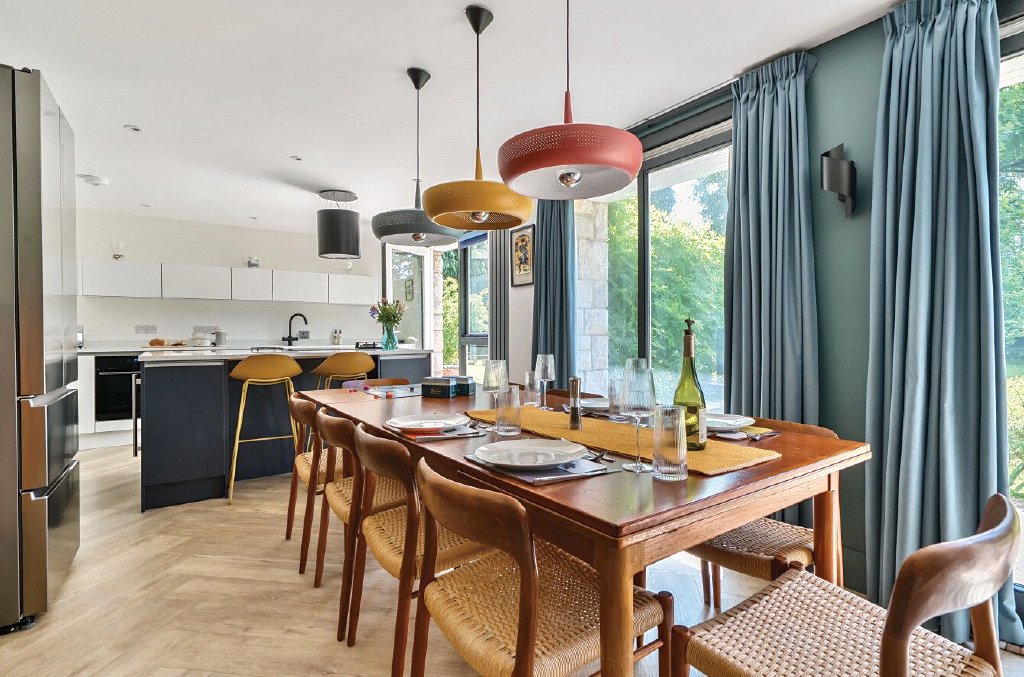 The house is arranged over two light-filled floors, with five bedrooms and a flowing open-plan living space that has been fully refurbished. ‘In 2021, we gave it a complete refresh – new electrics, plumbing, boiler – and we reimagined the interiors to create a more modern feel. Even the old conservatory became our third-generation potting shed in the walled garden.’