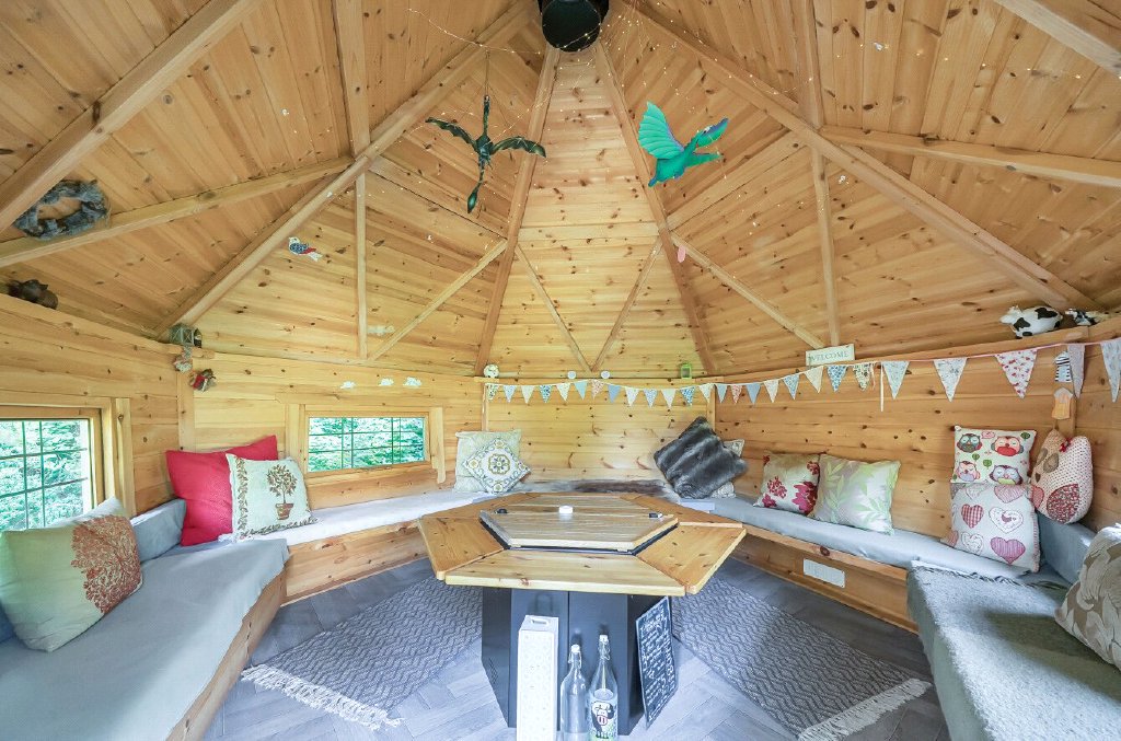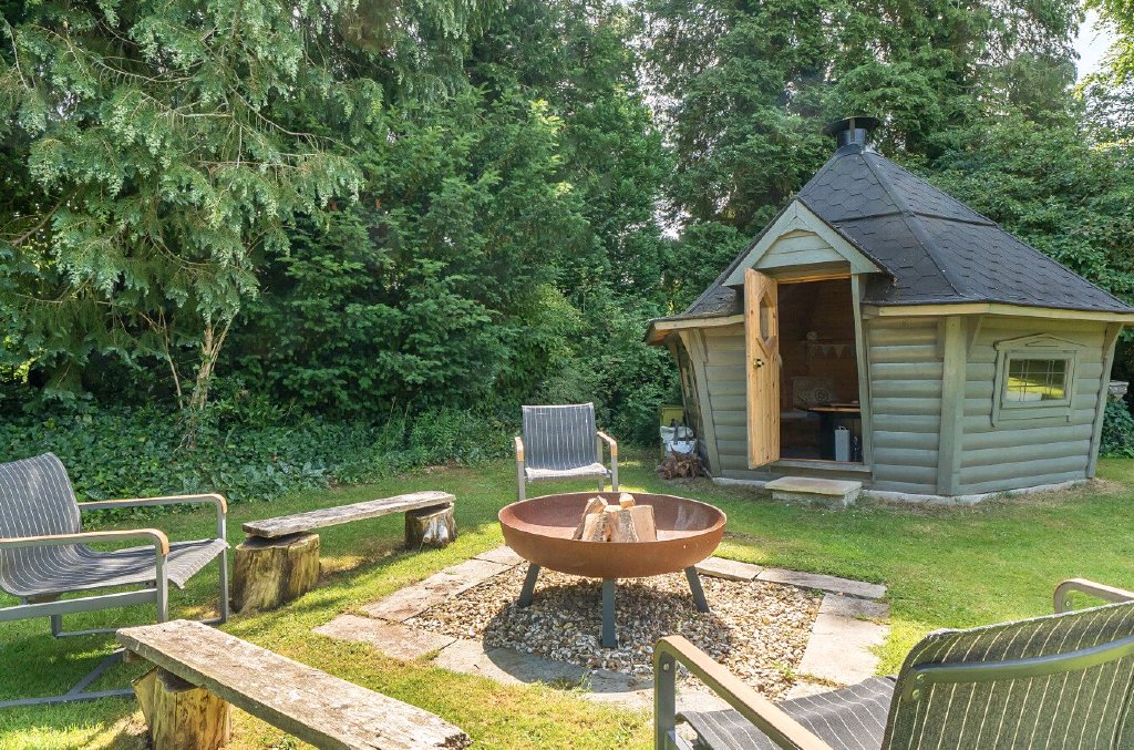 ‘We love sitting in the vegetable garden, listening to the stream winding past or watching the sunset from the fire pit by the lodge. The stream, which runs alongside the house, is steeped in local history and flows through several weirs.’