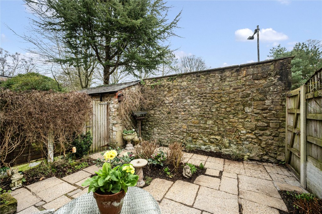 To the rear, a delightful walled cottage garden provides a private and tranquil retreat, with patio seating and well-stocked bedding areas bordered by mature flowering plants, shrubs and climbing greenery.