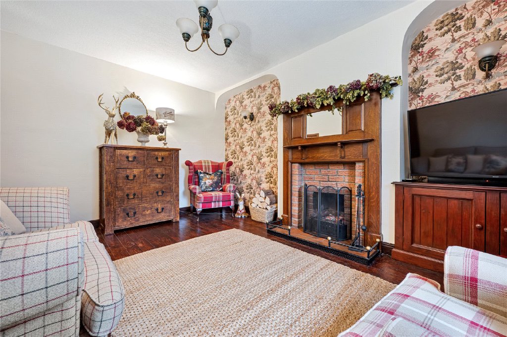 - Living room with open fire and breakfast kitchen