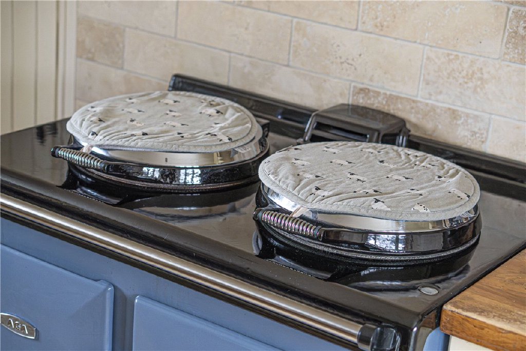 The garden is positioned mainly to the side of the cottage and is arranged with lawned sections, established borders, and areas set aside for planting. Two defined beds create space for growing vegetables, and a terrace behind the house is accessed directly from the kitchen. Parking is available on a gravelled area beside the cottage for three large vehicles, and a paved route leads to the main entrance. A five bar gate at the lower end of the garden provides an additional access point.