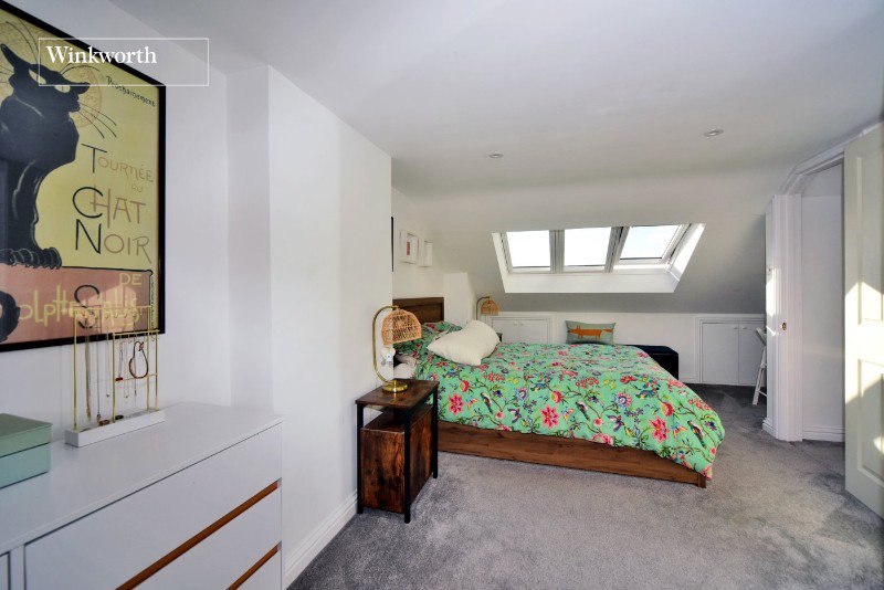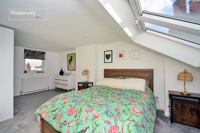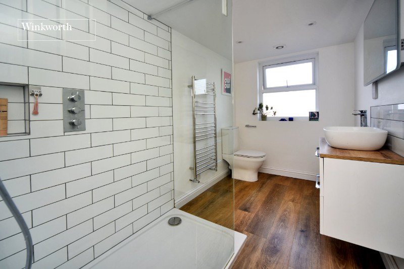 The property is deceptively spacious and is well-decorated throughout. The accommodation on the ground floor comprises a vast entrance hall, a front aspect living room with bay window, fitted storage units and a beautiful fireplace, a second reception room which is used as the family and dining room, a modern fitted kitchen with lots of work top space and Velux style windows allowing lots of natural light and a recently renovated bathroom with WC. On the first floor, there is a large bedroom facing the front aspect with fitted wardrobes, a shower room, a further double bedroom with fitted wardrobes and a third good-sized single bedroom. On the second floor, the principal bedroom features a luxury shower room and eaves storage.