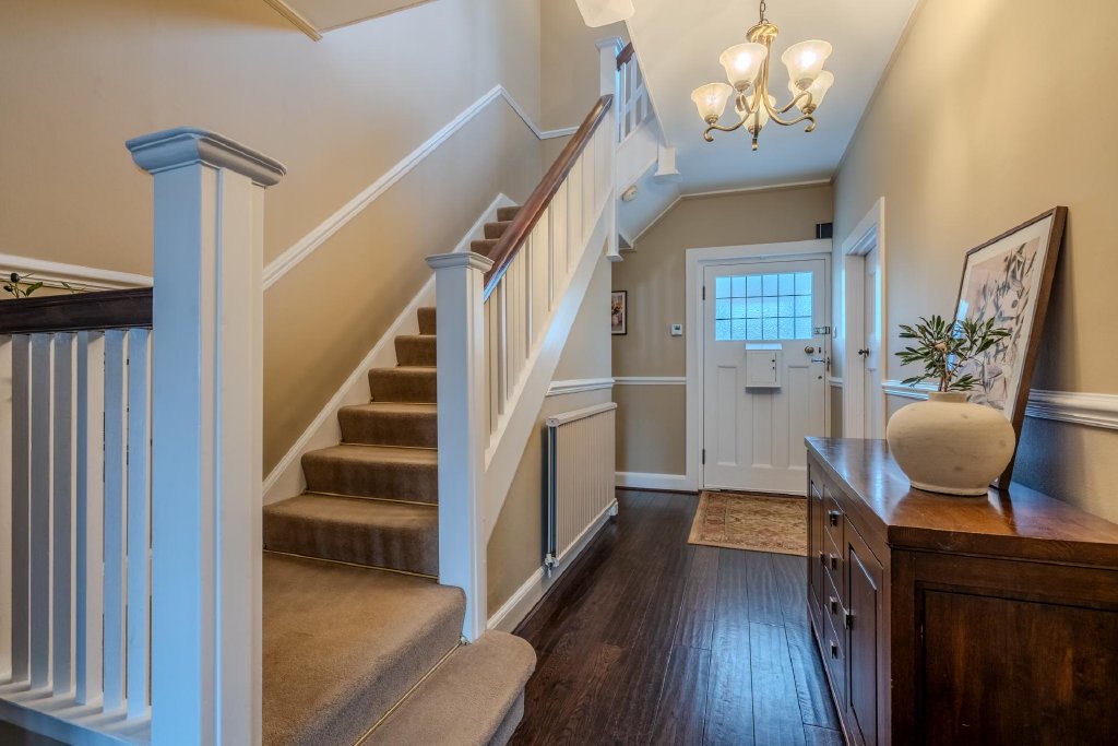 A short walk from a glorious sandy beach, on a smart, tree-lined street, you’ll find this handsome period home. Its frontage is part screened by mature trees and gives you a real sense of privacy within, despite the convenience of the location. With versatile accommodation spread over three floors, it’s the ideal home for a large family or anyone who loves to host a houseful!